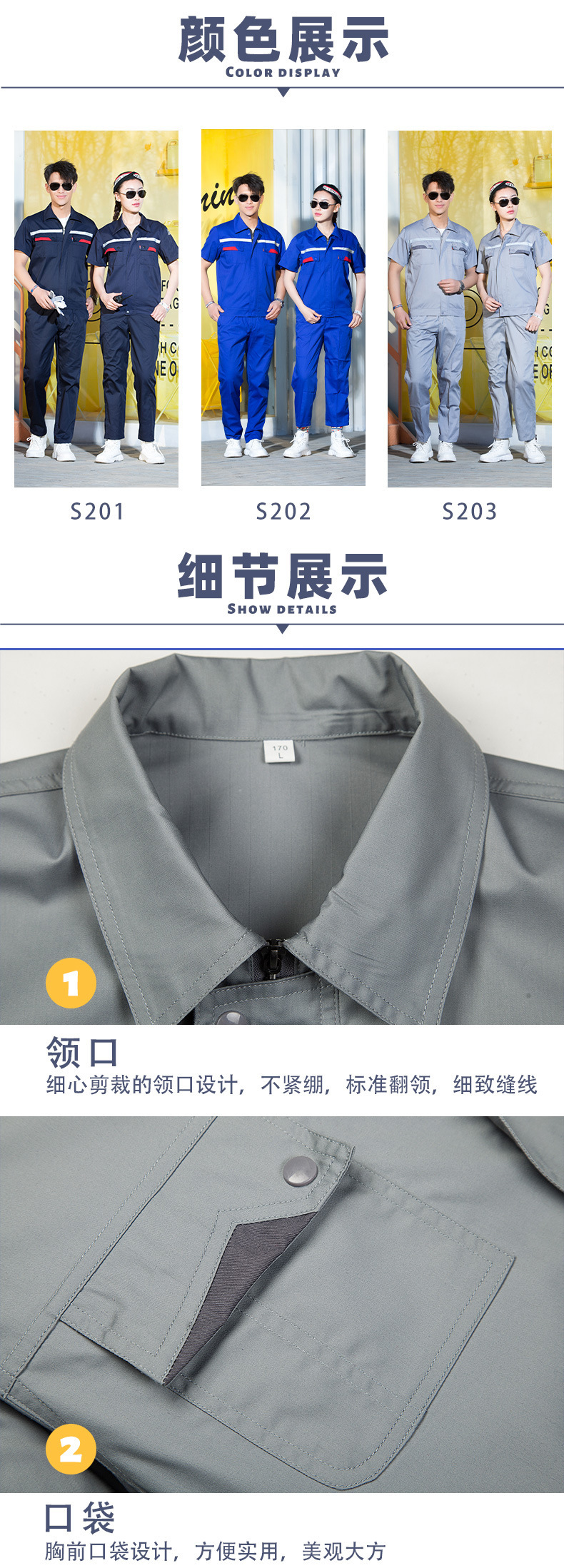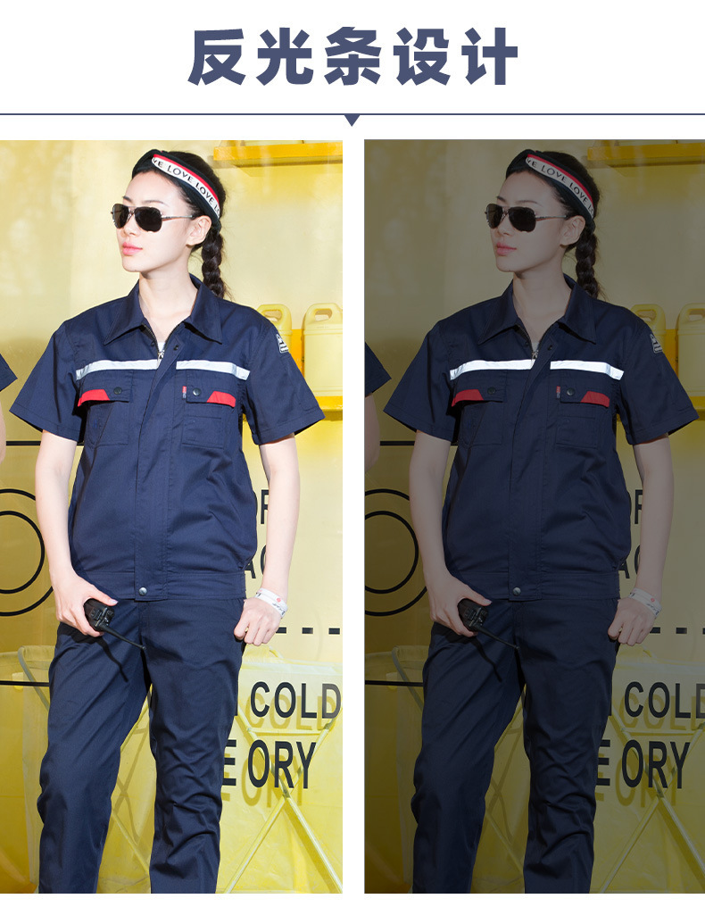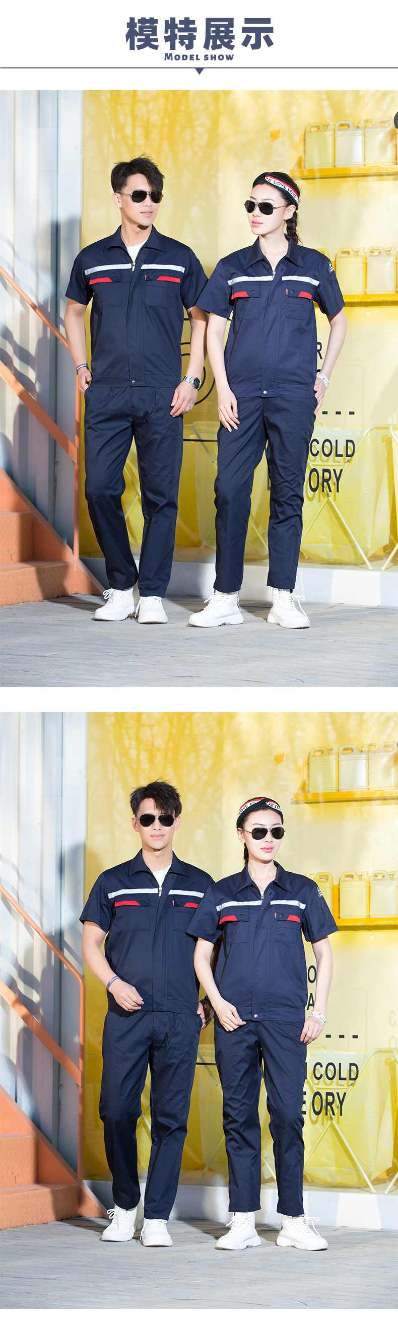 도매 여름 반팔 정전기 방지 노동 보호 의류 작업복 세트 반사 전원 그리드 Sinopec 급유 작업장 인쇄 및 자수스토어 가기