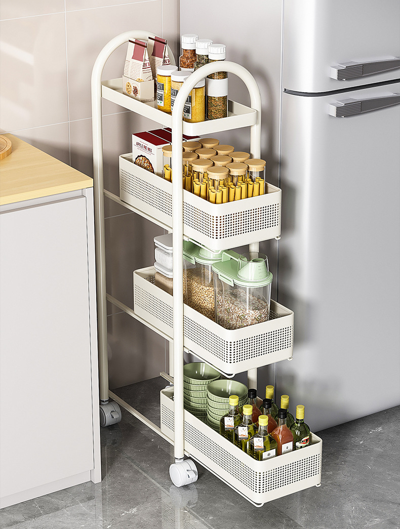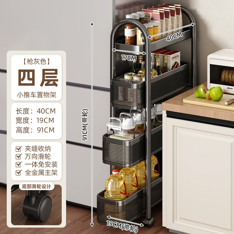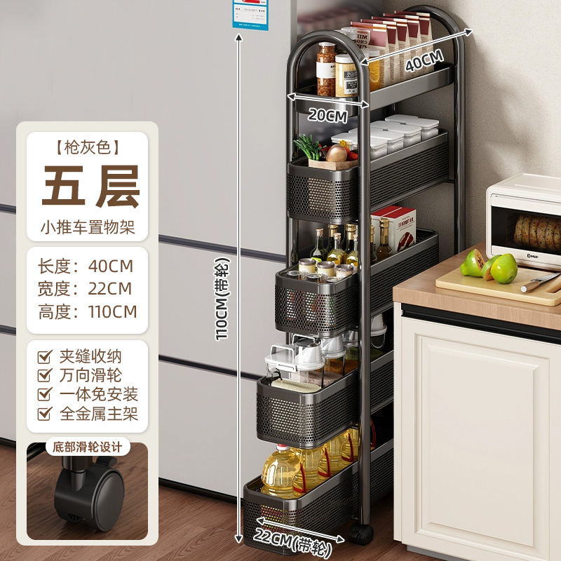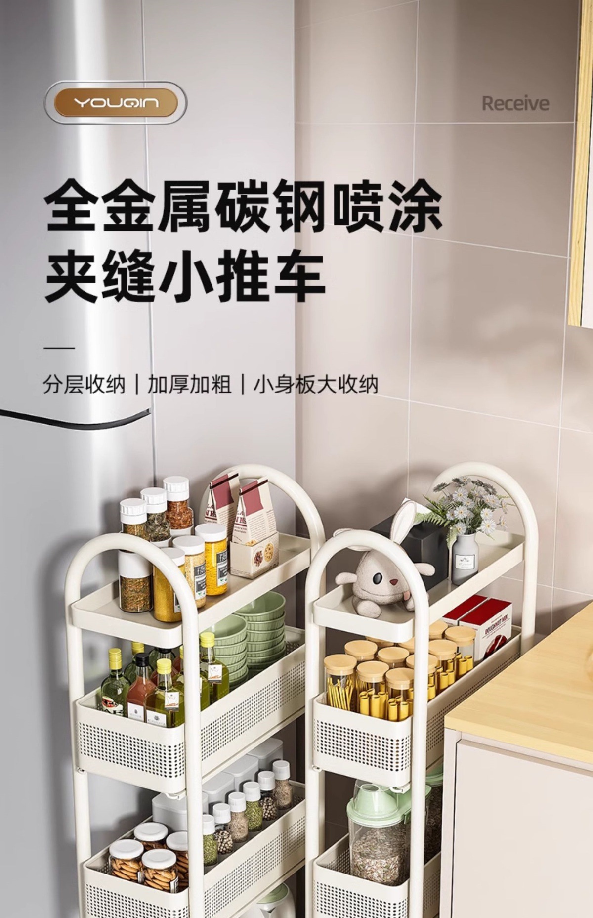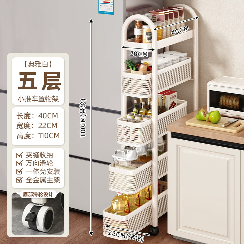 Youqin Kitchen Gap Storage Rack Floor 다층 냉장고 사이드 풀 아웃 캐비닛 매우 좁은 갭 스토리지 캐비닛 트롤리