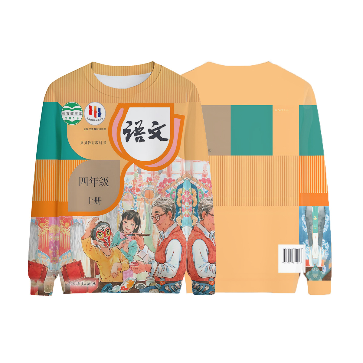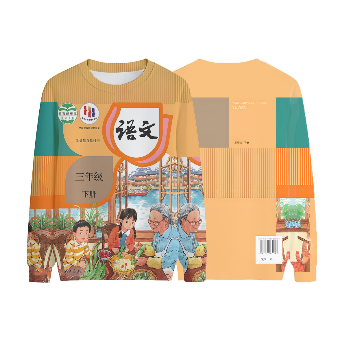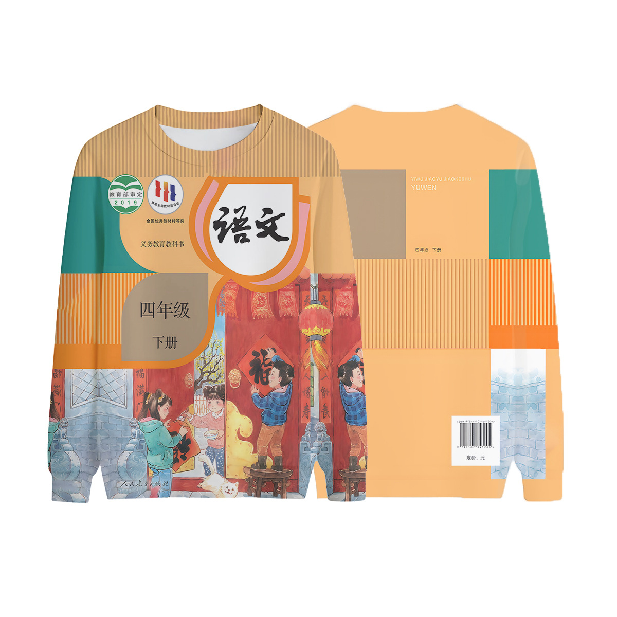 2024 가을 새로운 긴 소매 둥근 목 스웨터 창조적 인 중국 교과서 3D 디지털 인쇄 긴 소매 스웨터스토어 가기