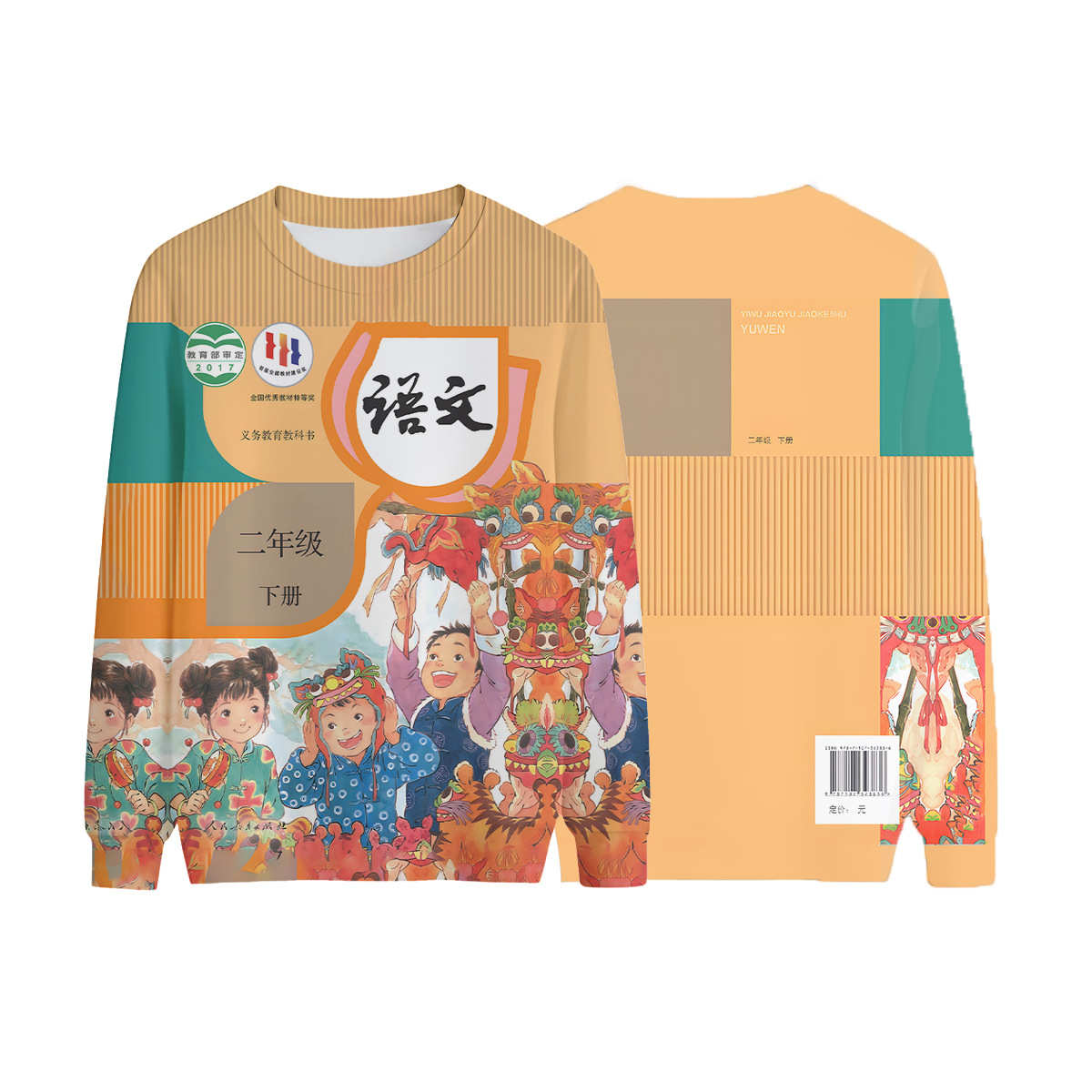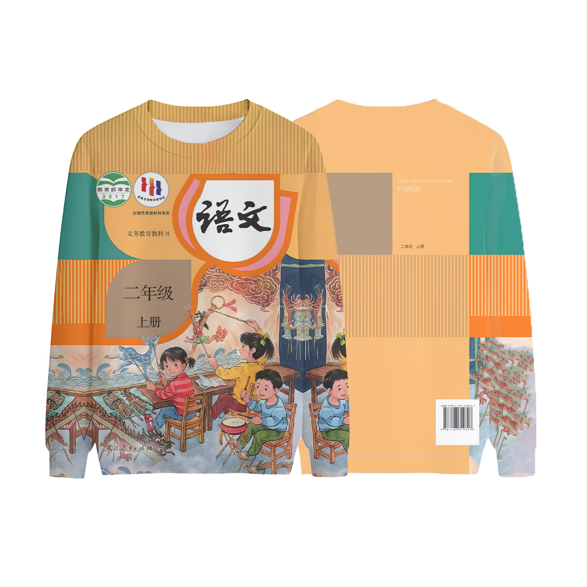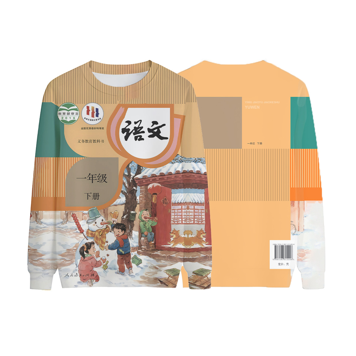 2024 가을 새로운 긴 소매 둥근 목 스웨터 창조적 인 중국 교과서 3D 디지털 인쇄 긴 소매 스웨터스토어 가기