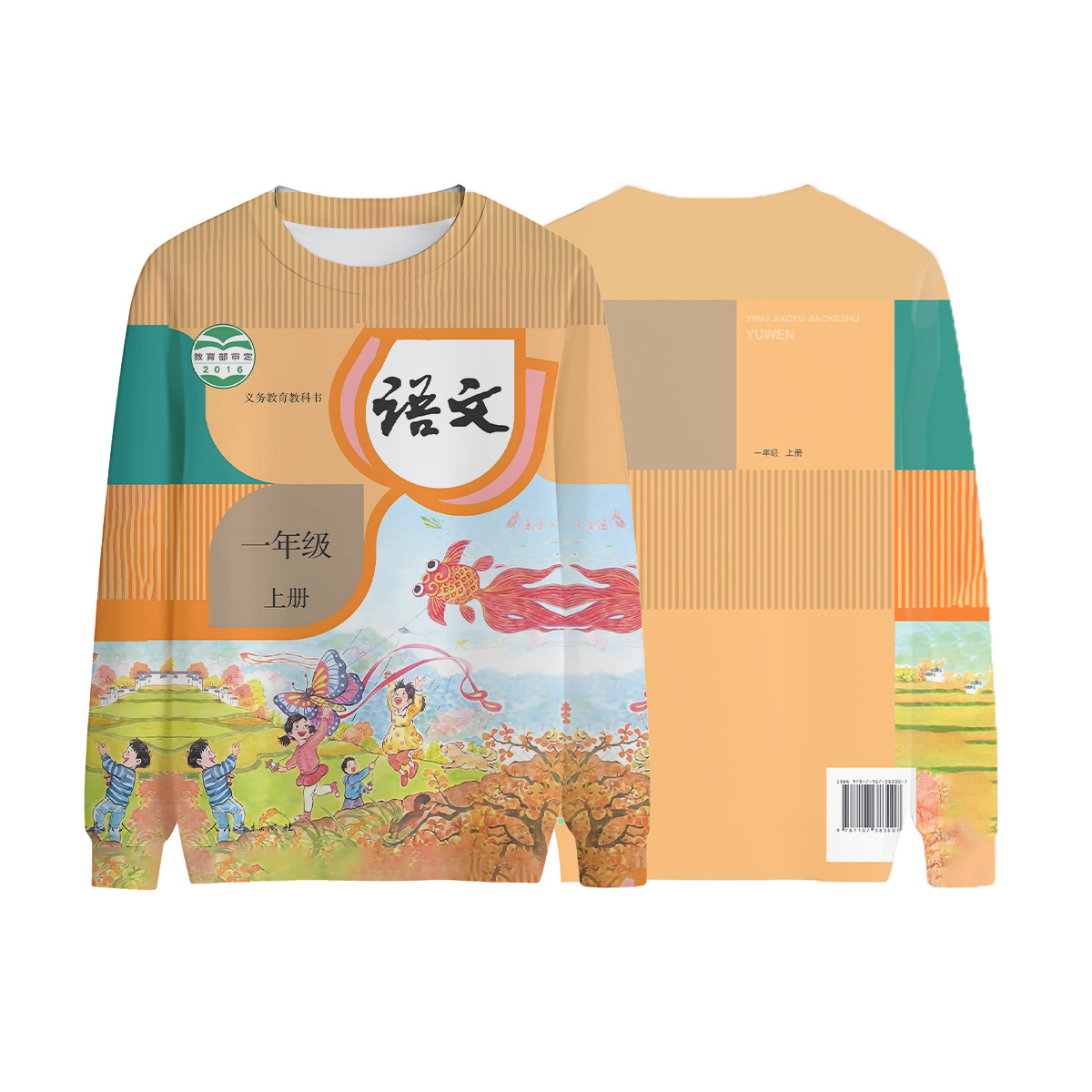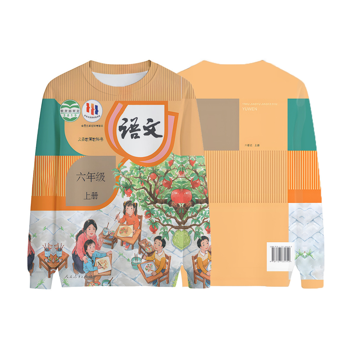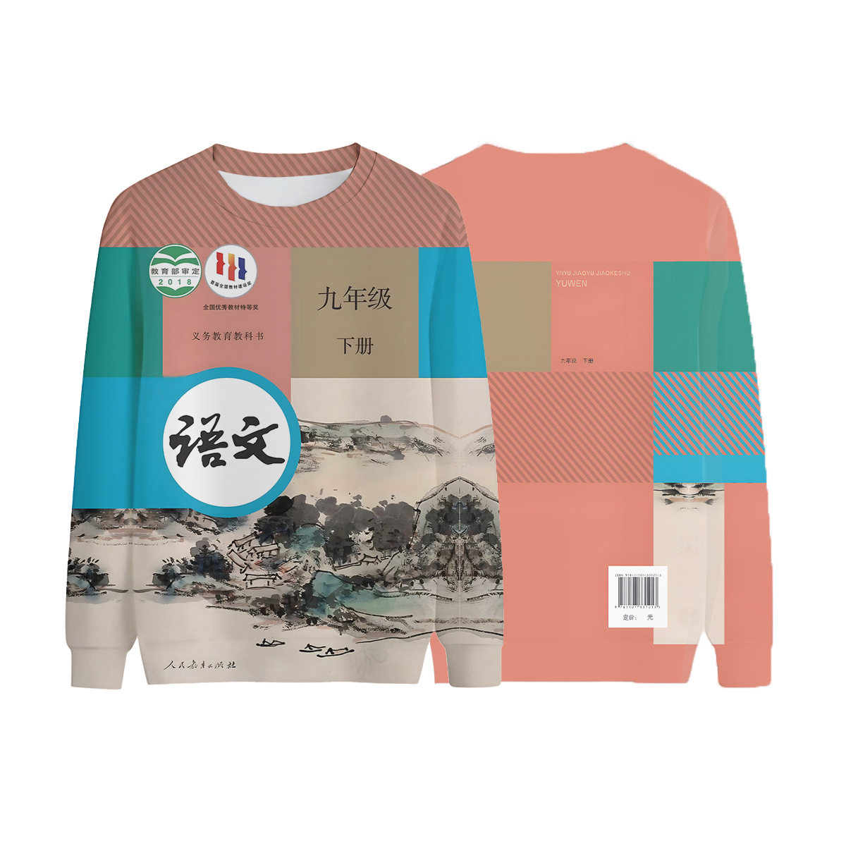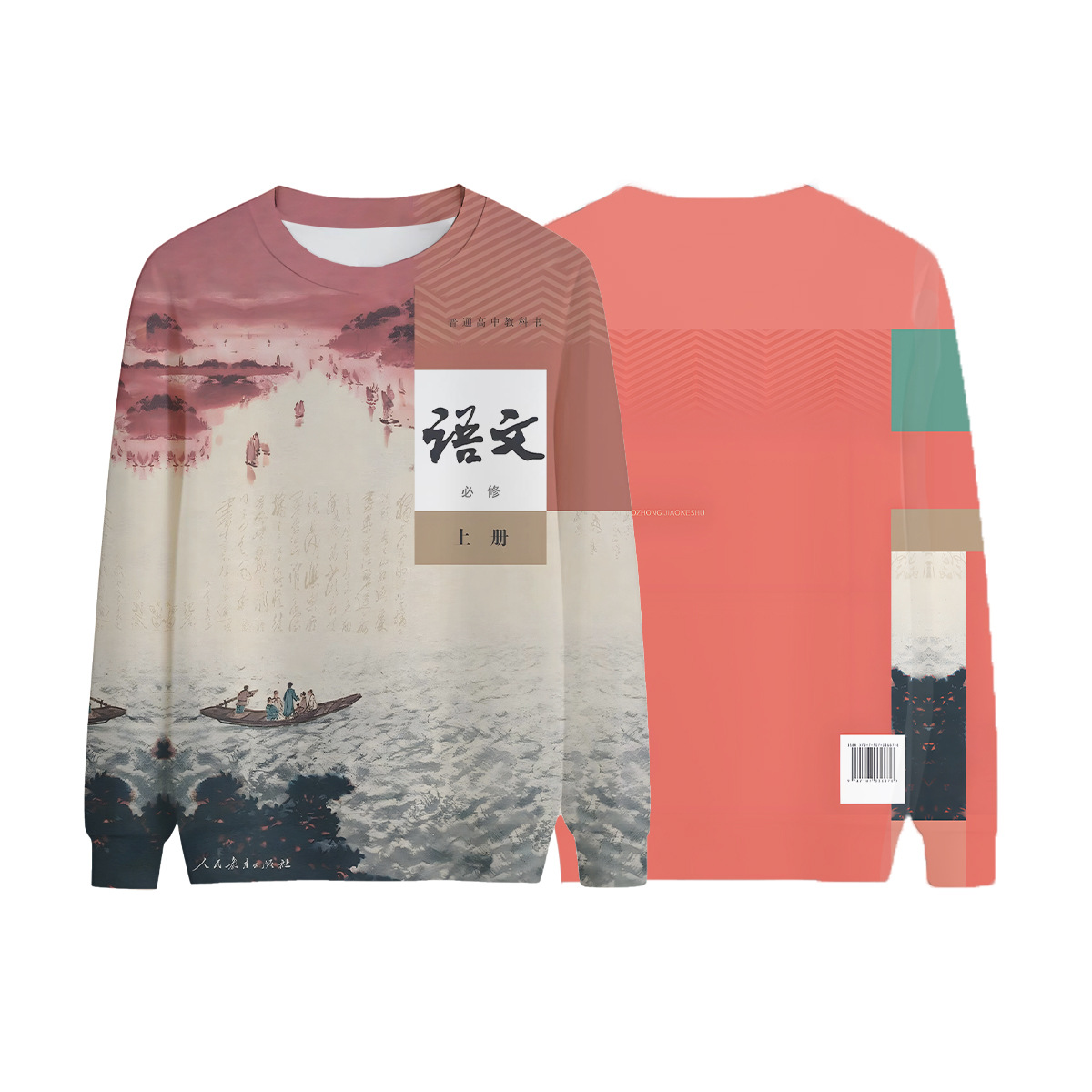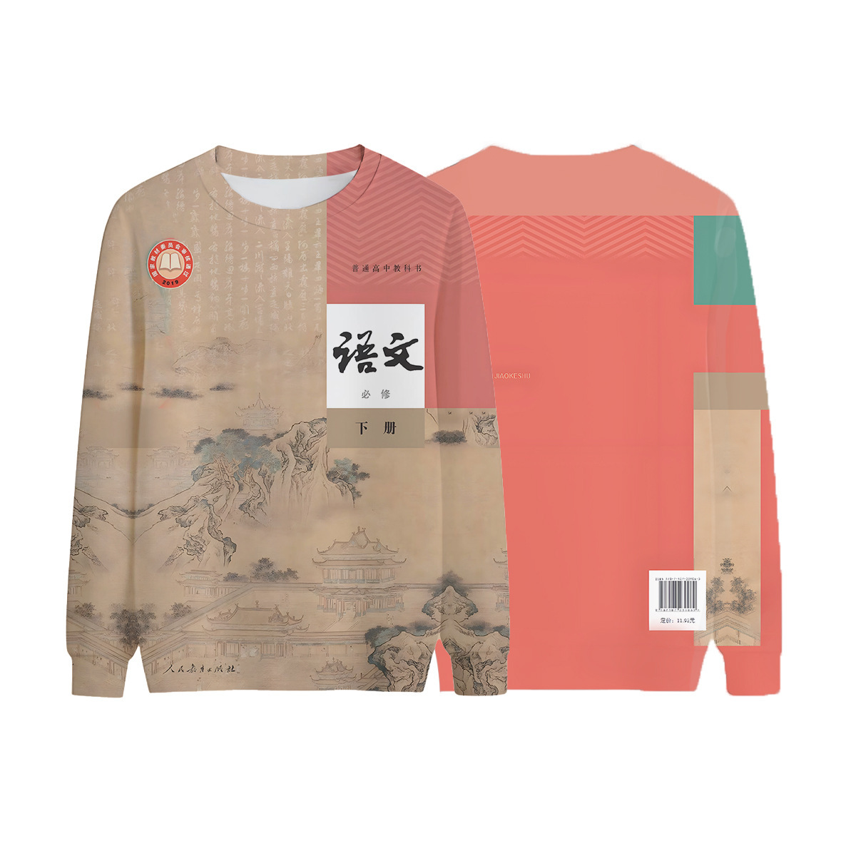 2024 가을 새로운 긴 소매 둥근 목 스웨터 창조적 인 중국 교과서 3D 디지털 인쇄 긴 소매 스웨터