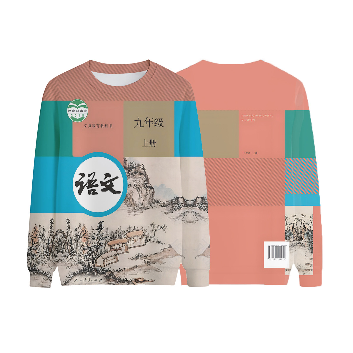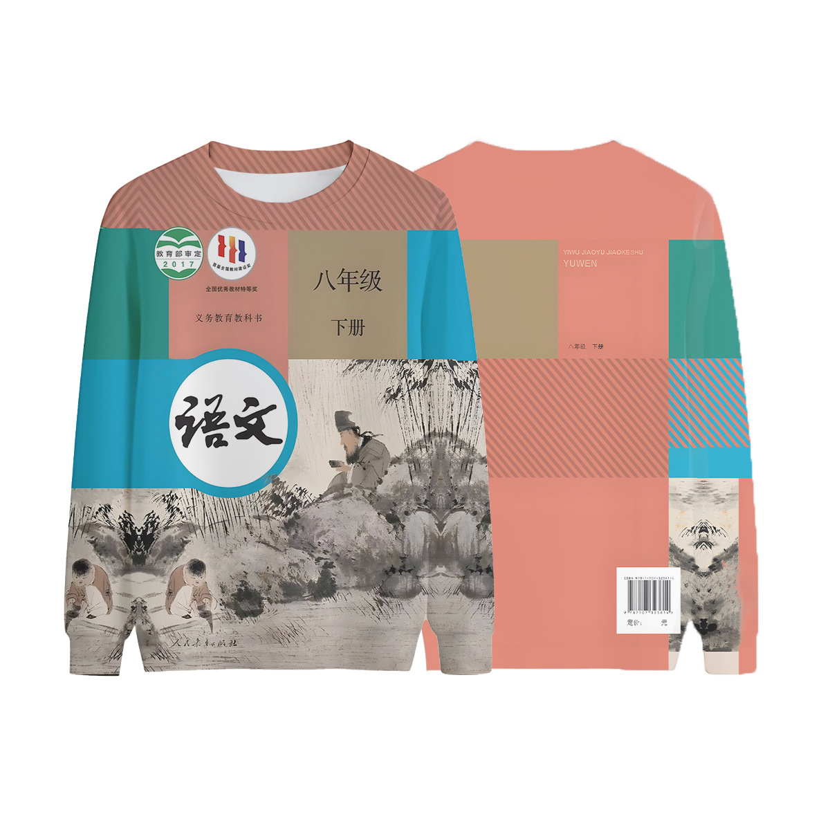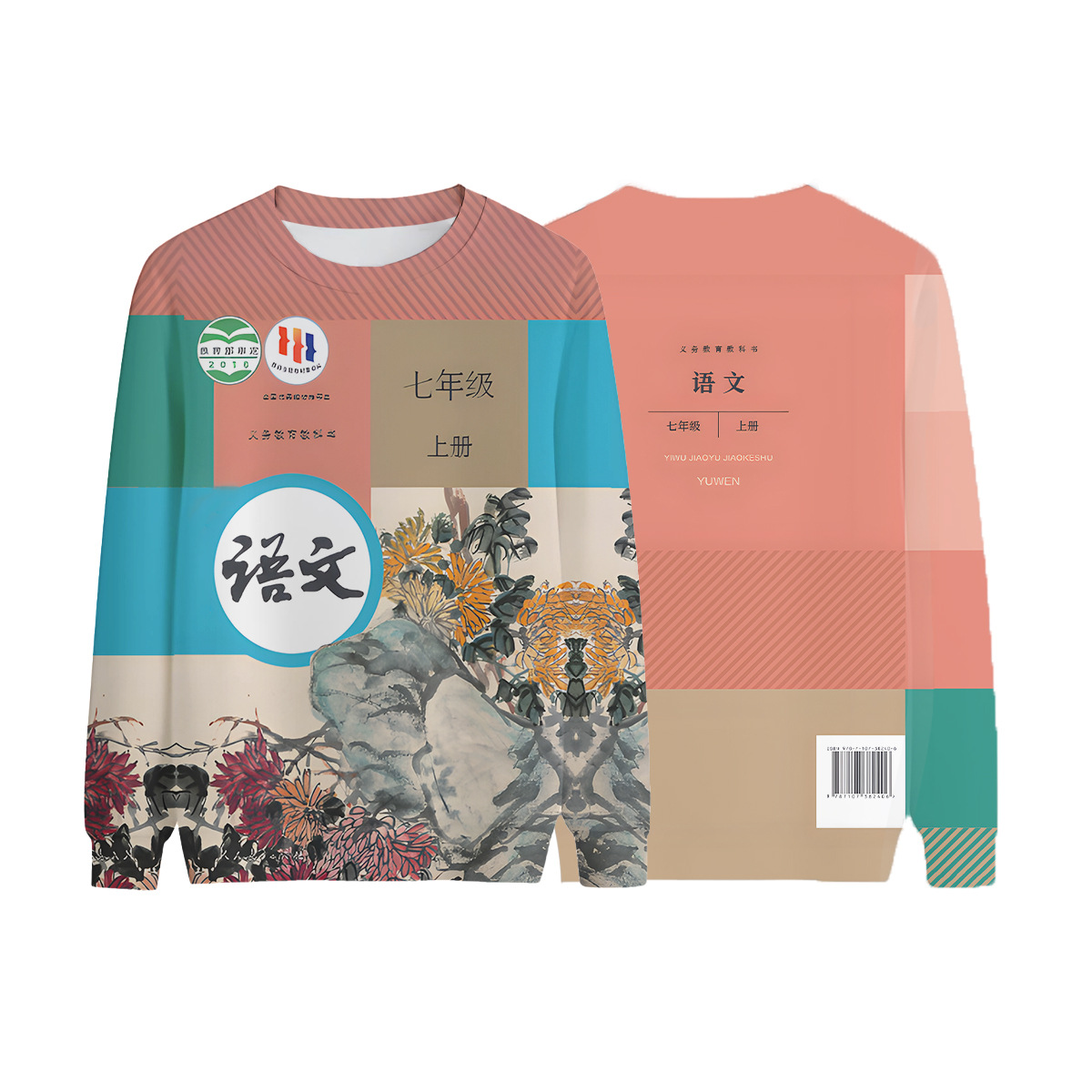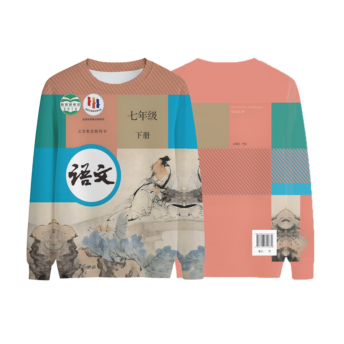2024 가을 새로운 긴 소매 둥근 목 스웨터 창조적 인 중국 교과서 3D 디지털 인쇄 긴 소매 스웨터