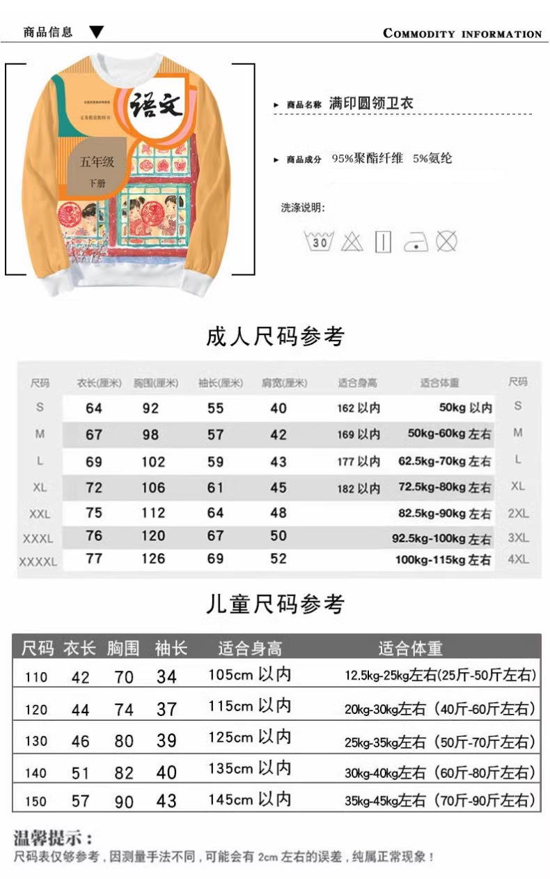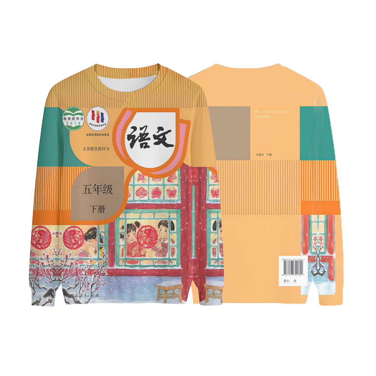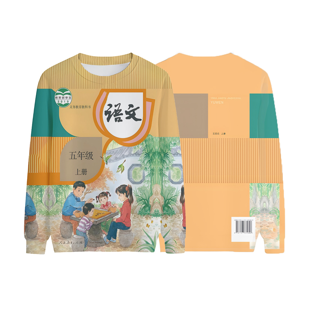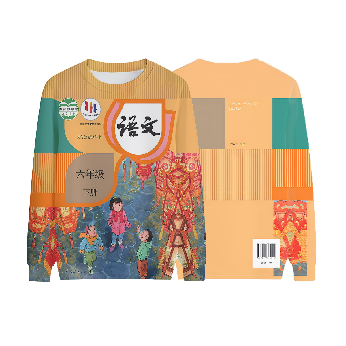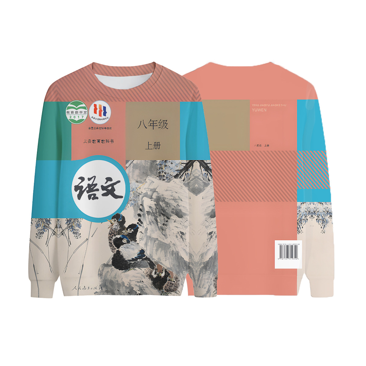 2024 가을 새로운 긴 소매 둥근 목 스웨터 창조적 인 중국 교과서 3D 디지털 인쇄 긴 소매 스웨터