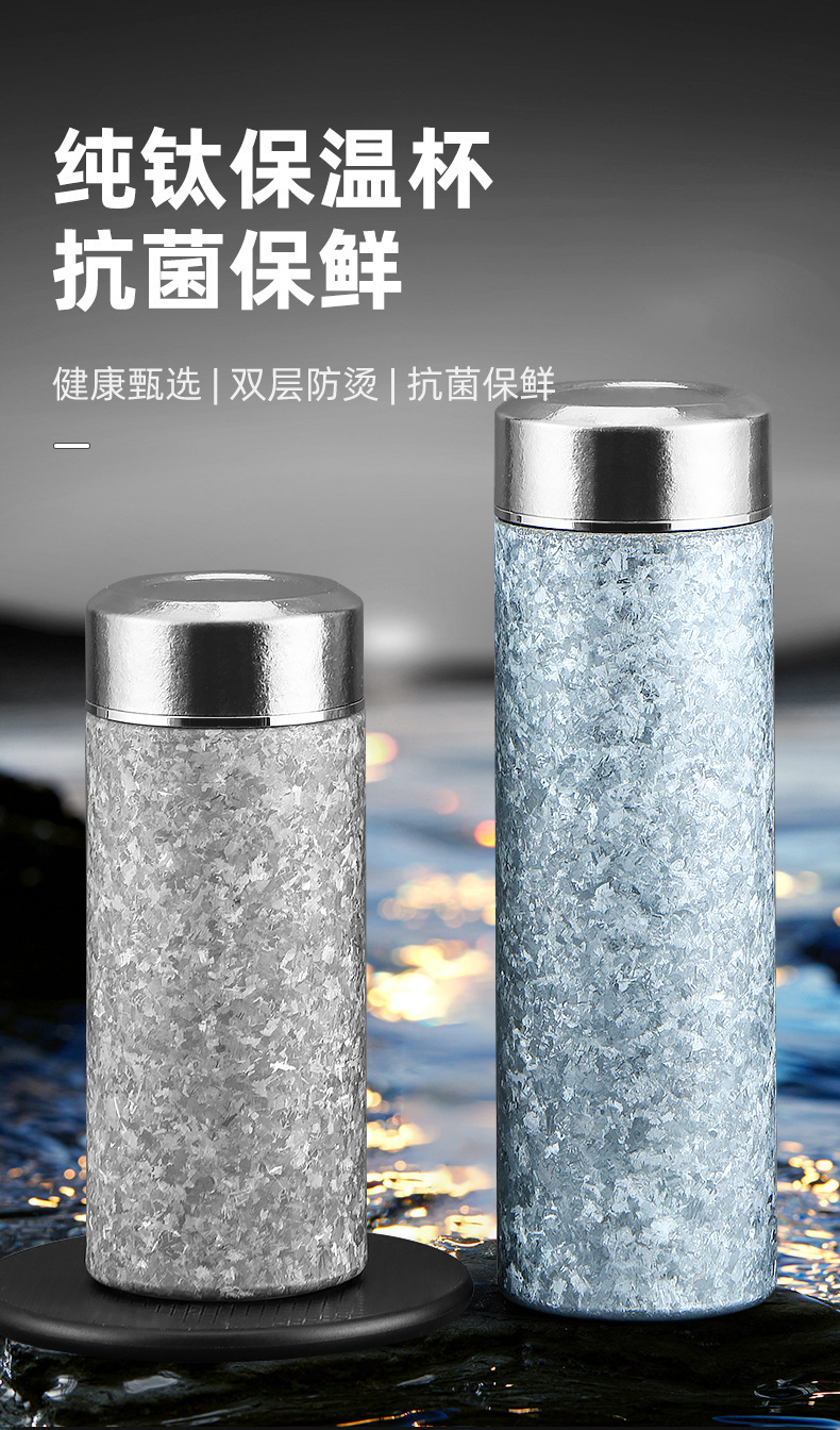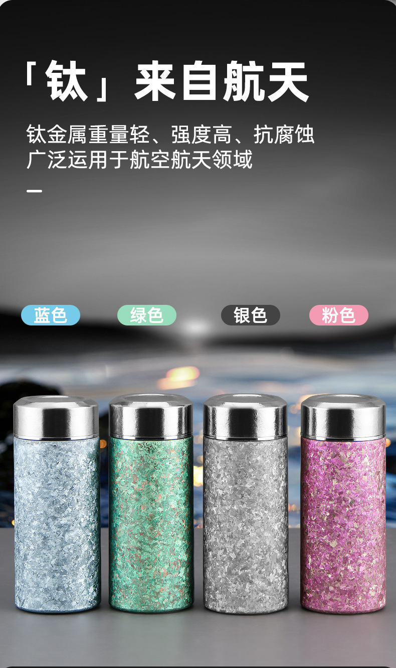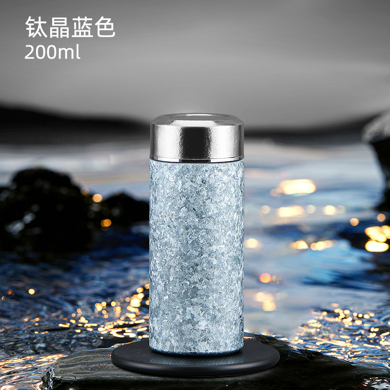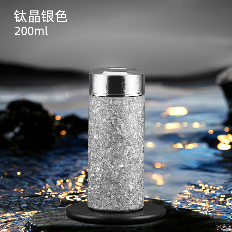 순수한 티타늄 아이스 크리스탈 포켓 컵 미니 보온병 컵 높은 색상 가치 순수 티타늄 워터 컵 반주 티 컵 휴대용 자동차
