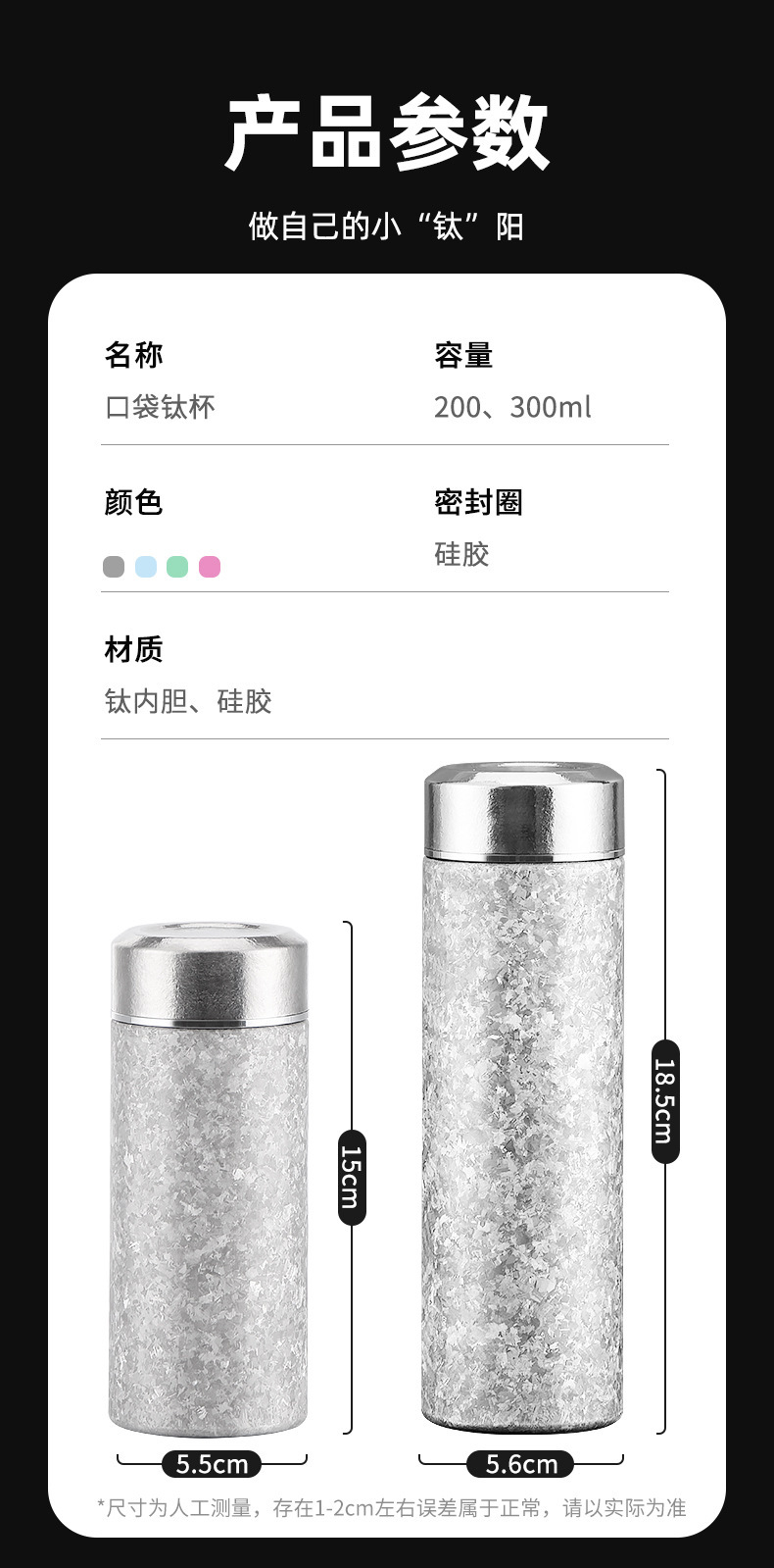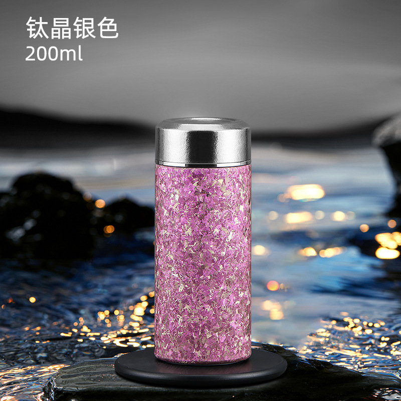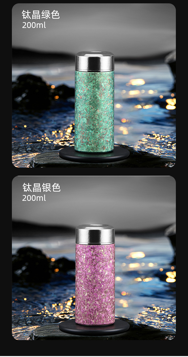 순수한 티타늄 아이스 크리스탈 포켓 컵 미니 보온병 컵 높은 색상 가치 순수 티타늄 워터 컵 반주 티 컵 휴대용 자동차