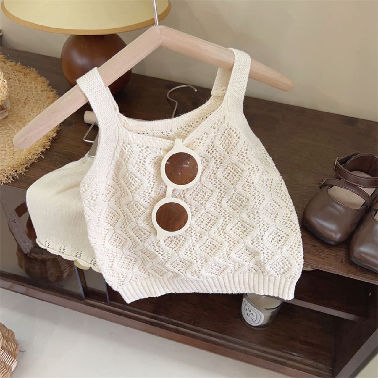 한국 스타일 소녀 여름 어린이 니트 카미솔 반바지 세트 얇은 스타일 민소매 조끼 투피스 새로운 스타일스토어 가기