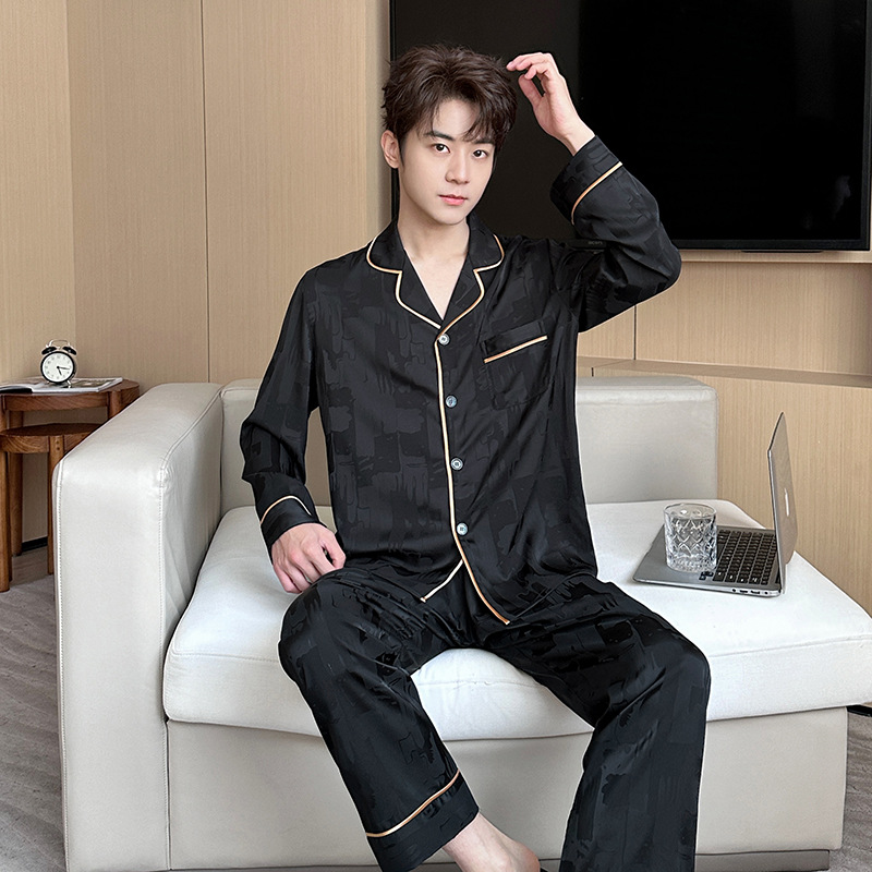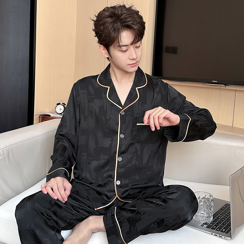 2025 새로운 잠옷 남성 아이스 실크 긴팔 봄과 가을 자카드 고급 남성 실크 홈 의류 세트 플러스 사이즈스토어 가기