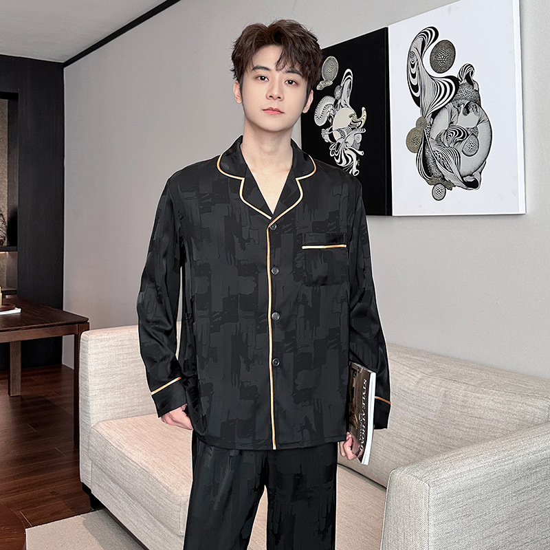 2025 새로운 잠옷 남성 아이스 실크 긴팔 봄과 가을 자카드 고급 남성 실크 홈 의류 세트 플러스 사이즈