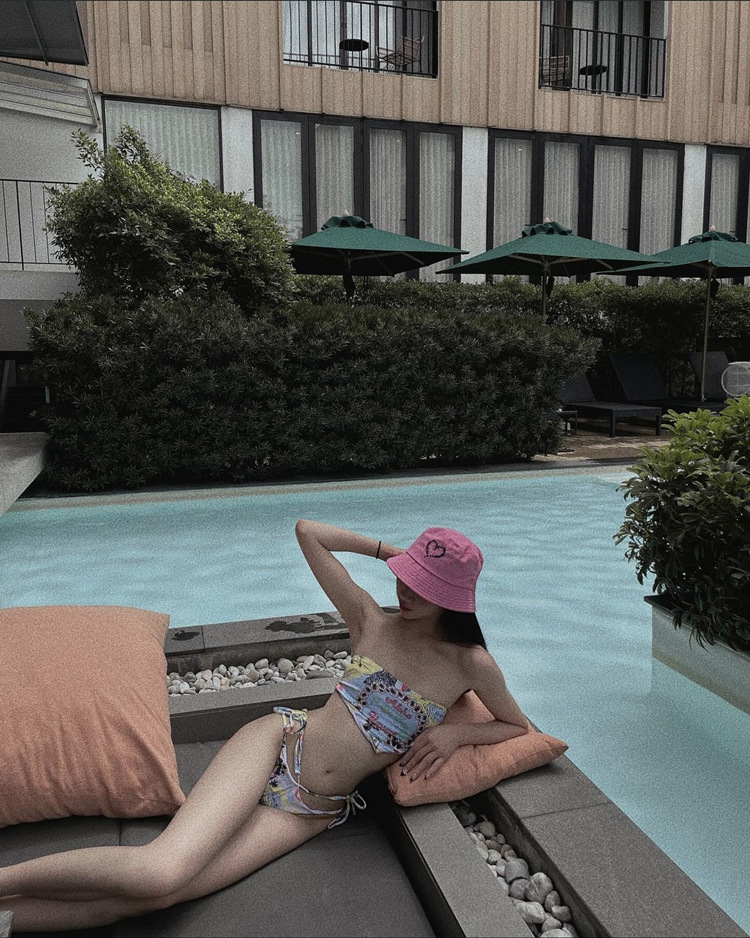 태국 스타일 스파이스 소녀 퓨어, 스트랩리스 스트랩 섹시 백리스 3 점 스플릿 비키니 휴일 사진 수영복스토어 가기