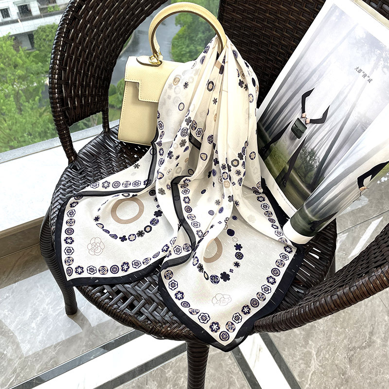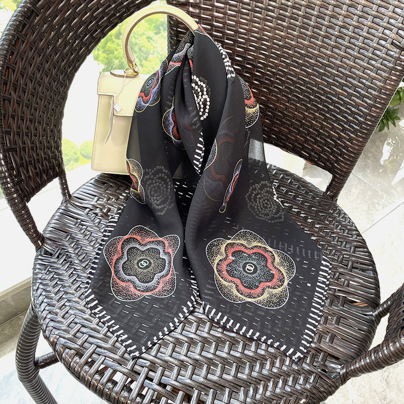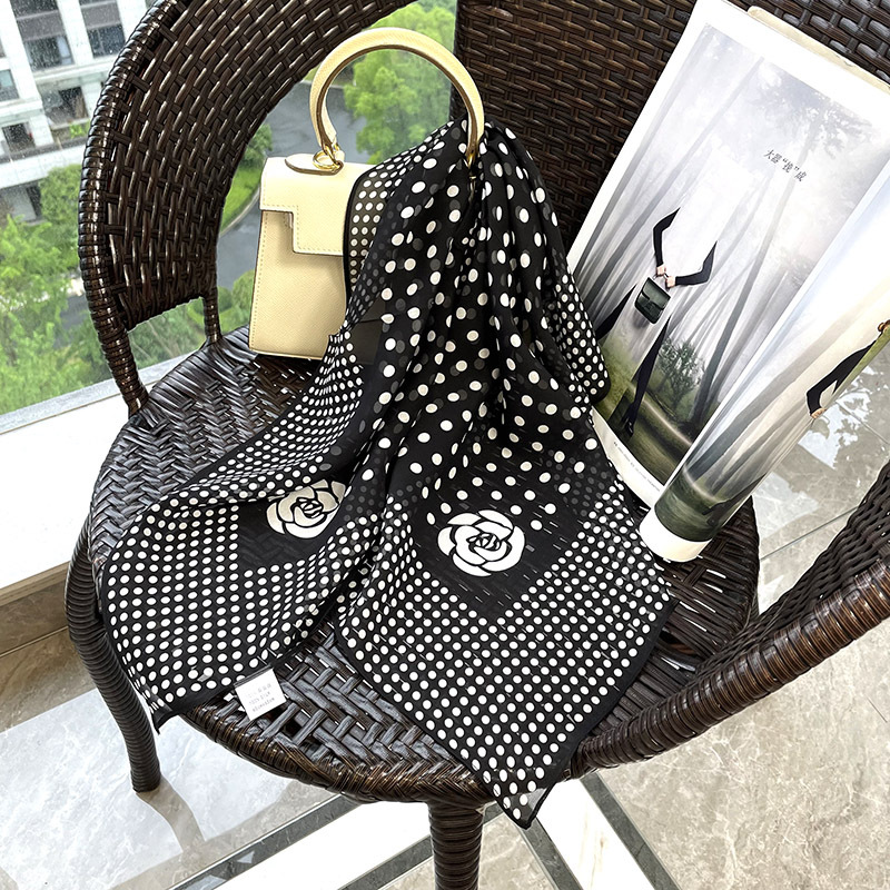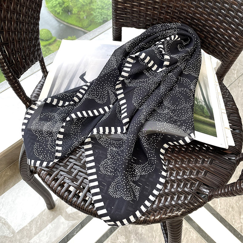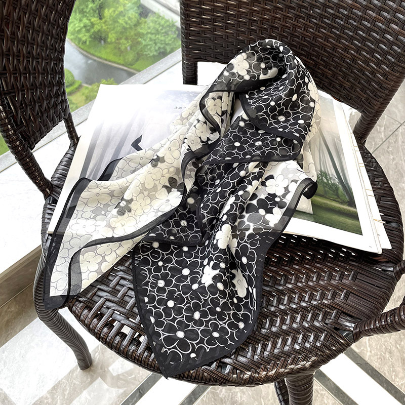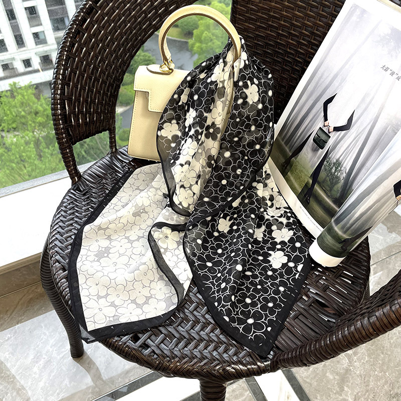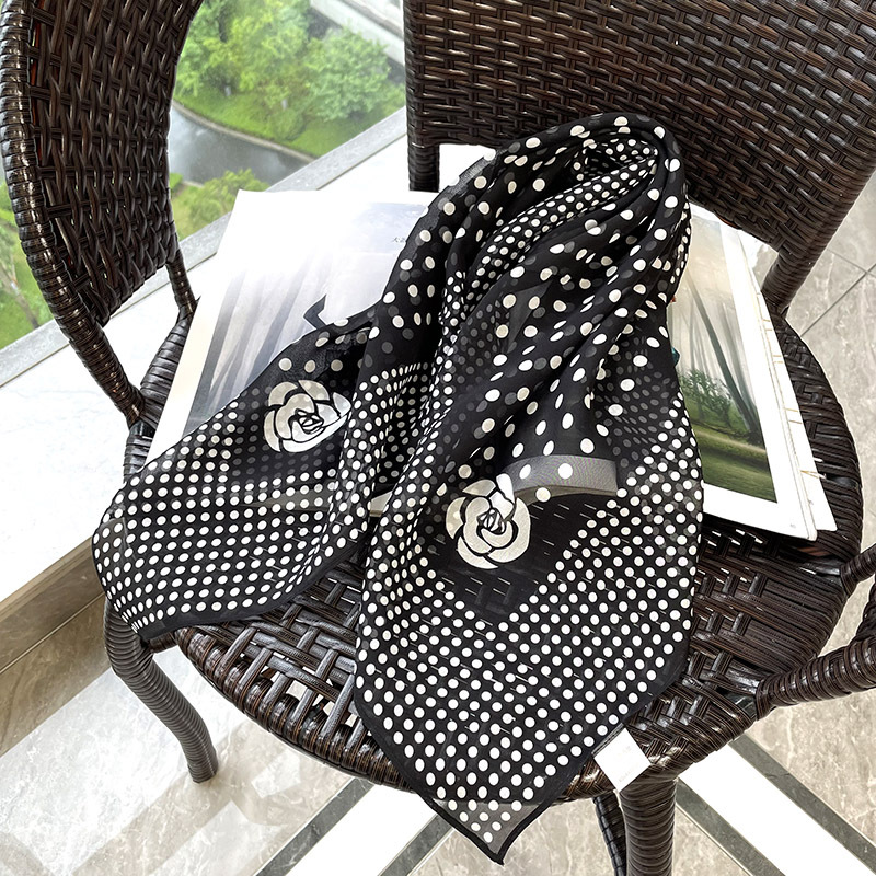 65cm 실크 스카프 헵번 스타일 실크 조 스퀘어 실크 매우 간단한 얇은 스카프 흑백 웨이브 동백