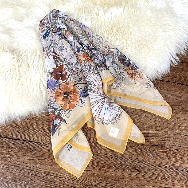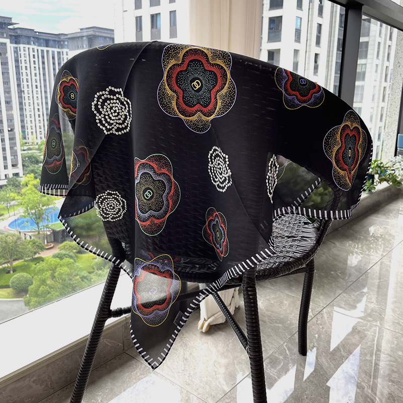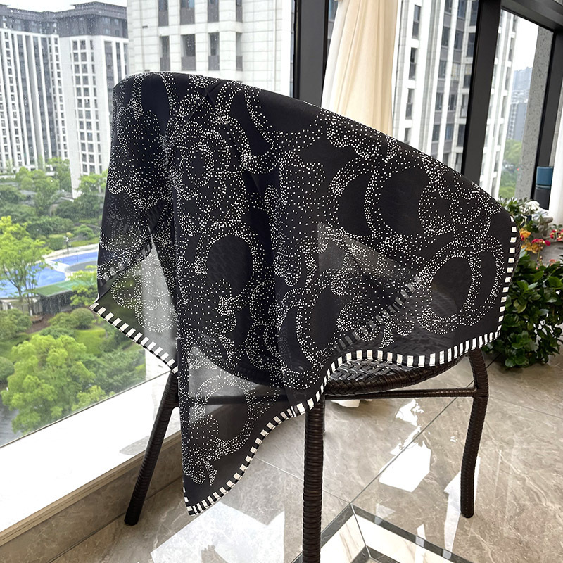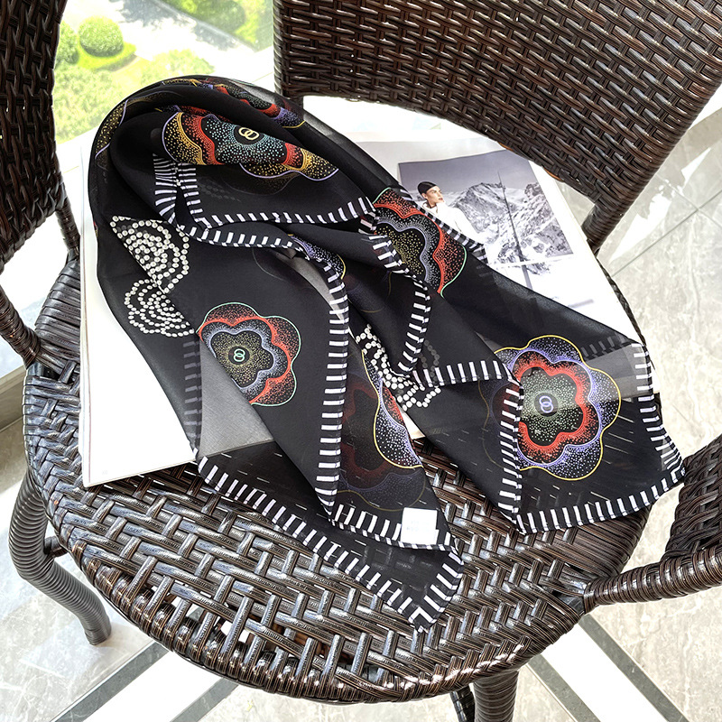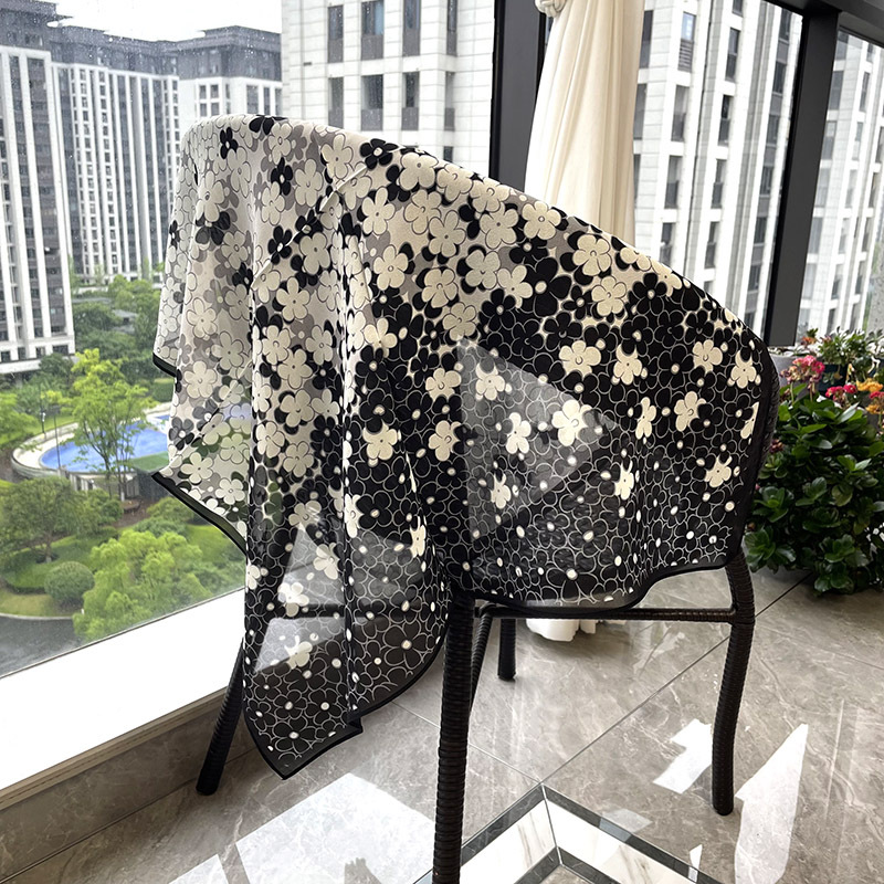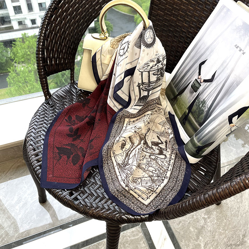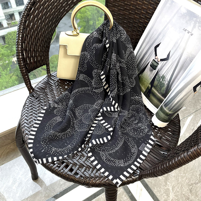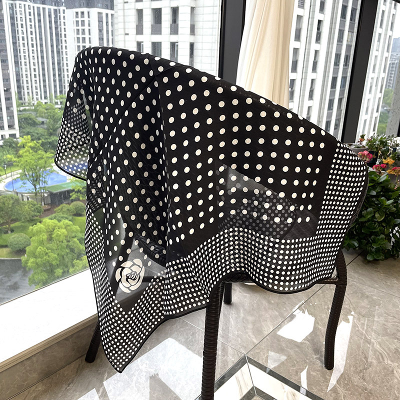 65cm 실크 스카프 헵번 스타일 실크 조 스퀘어 실크 매우 간단한 얇은 스카프 흑백 웨이브 동백