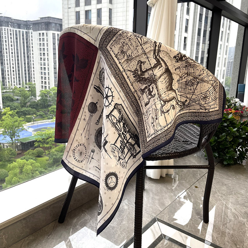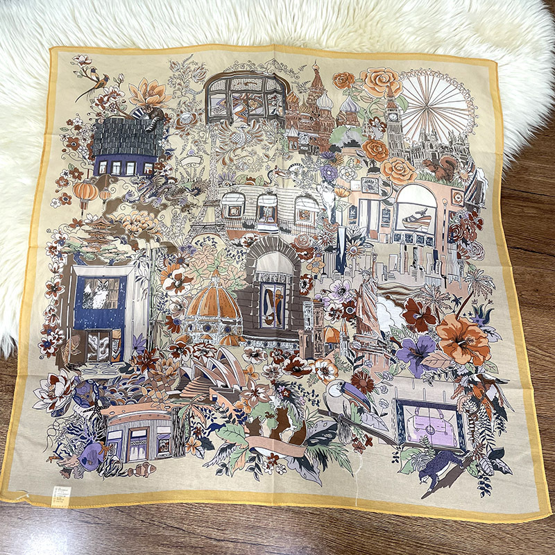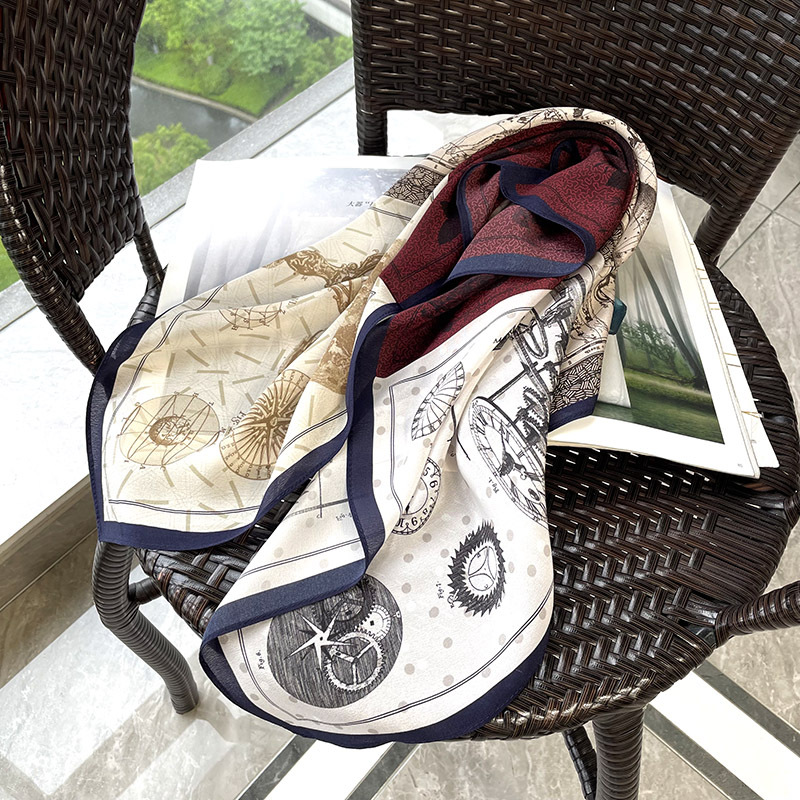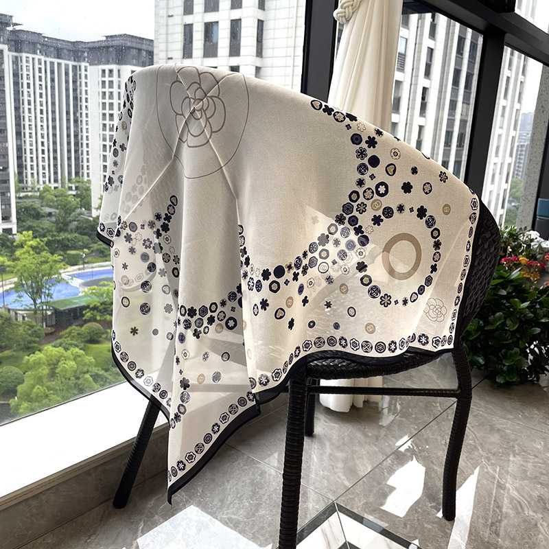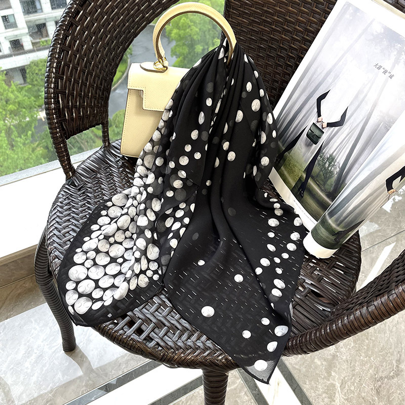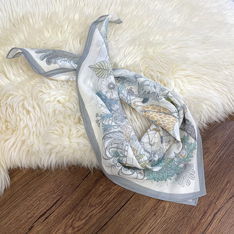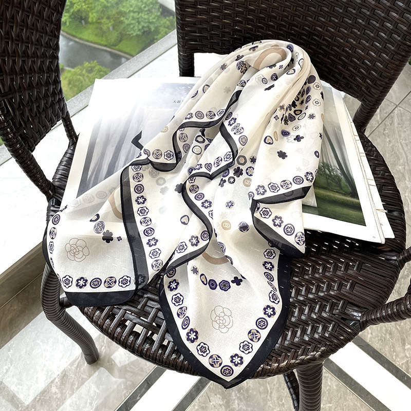 65cm 실크 스카프 헵번 스타일 실크 조 스퀘어 실크 매우 간단한 얇은 스카프 흑백 웨이브 동백스토어 가기