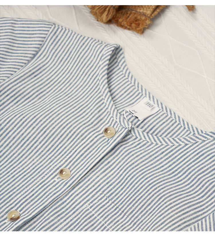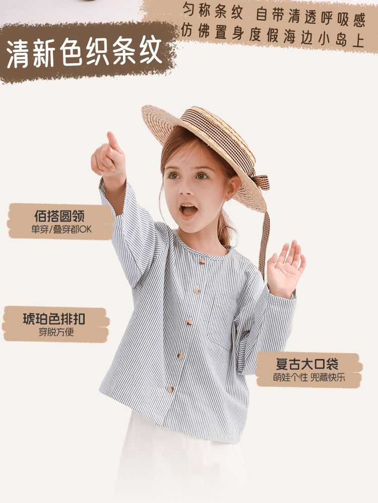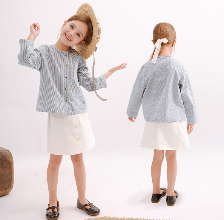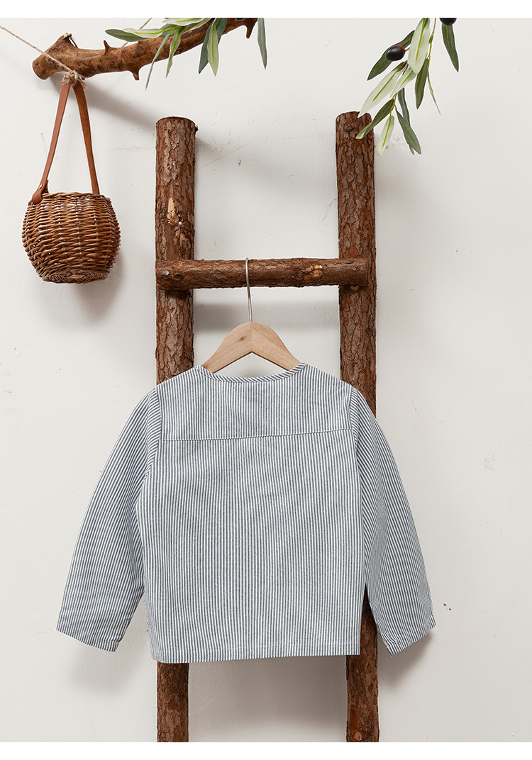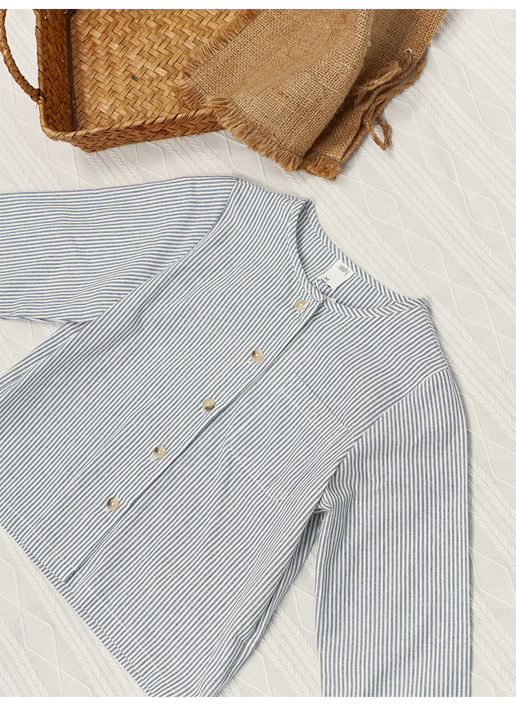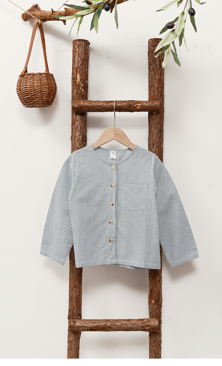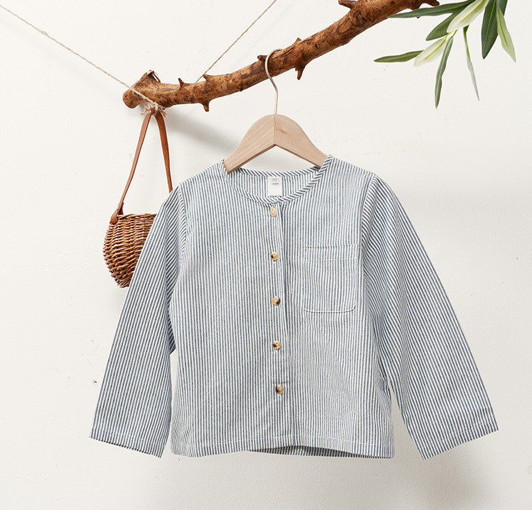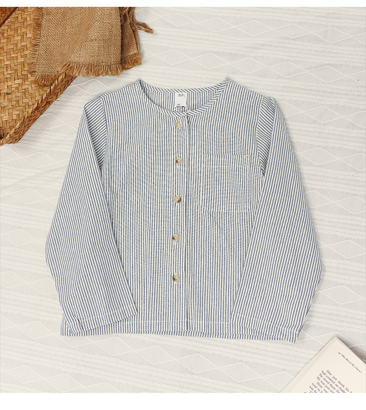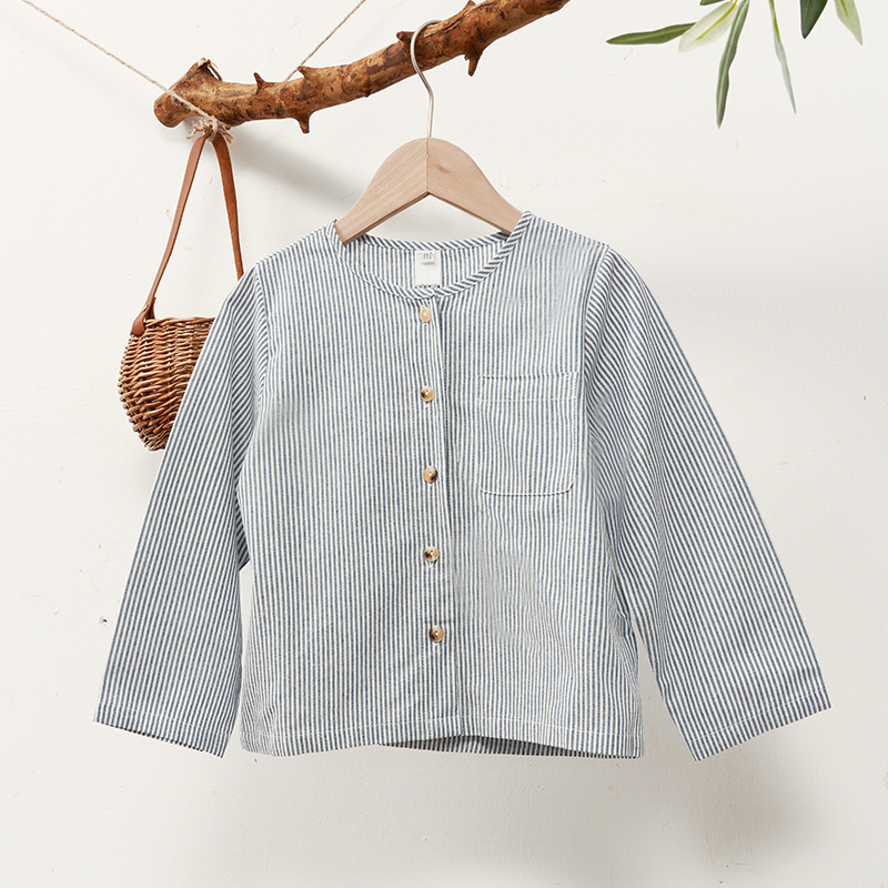 【재고정리】블루 스트라이프 셔츠 한국 스타일 캐주얼 긴팔 아동복 단추형 라운드넥 셔츠 가디건스토어 가기