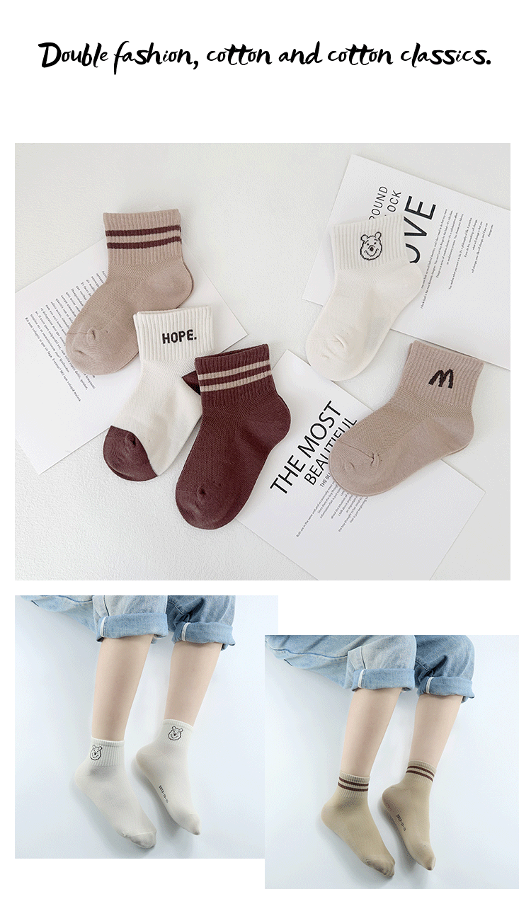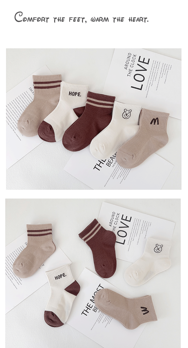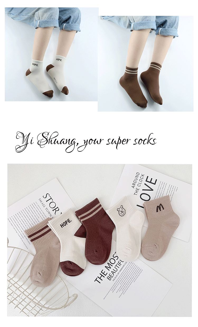 이 쌍 어린이 양말 여름 새로운 메쉬 통기성 유행 브랜드 편지 짧은 양말 빗 코튼 베어 뼈없는 어린이 양말