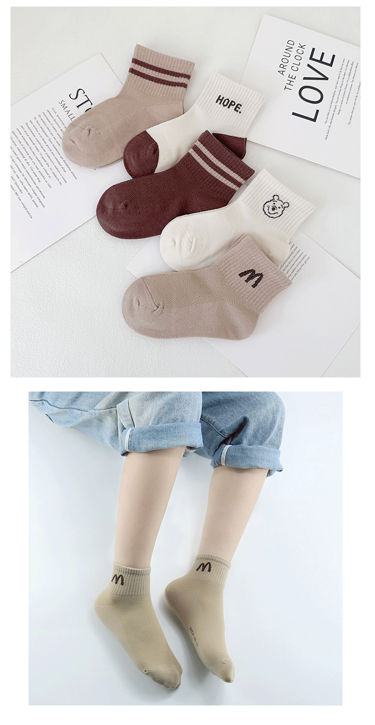 이 쌍 어린이 양말 여름 새로운 메쉬 통기성 유행 브랜드 편지 짧은 양말 빗 코튼 베어 뼈없는 어린이 양말스토어 가기