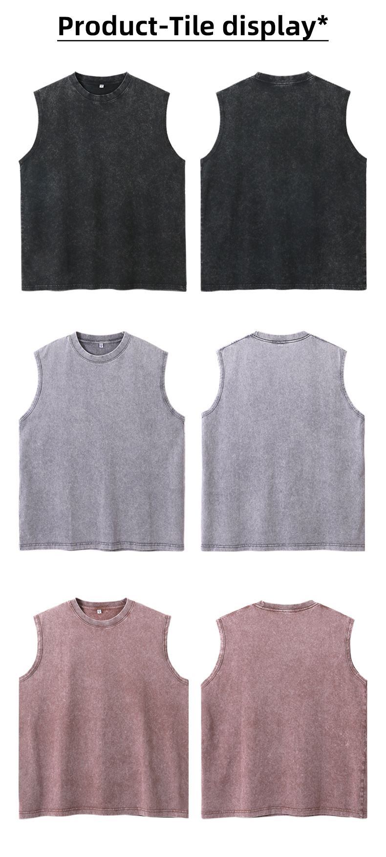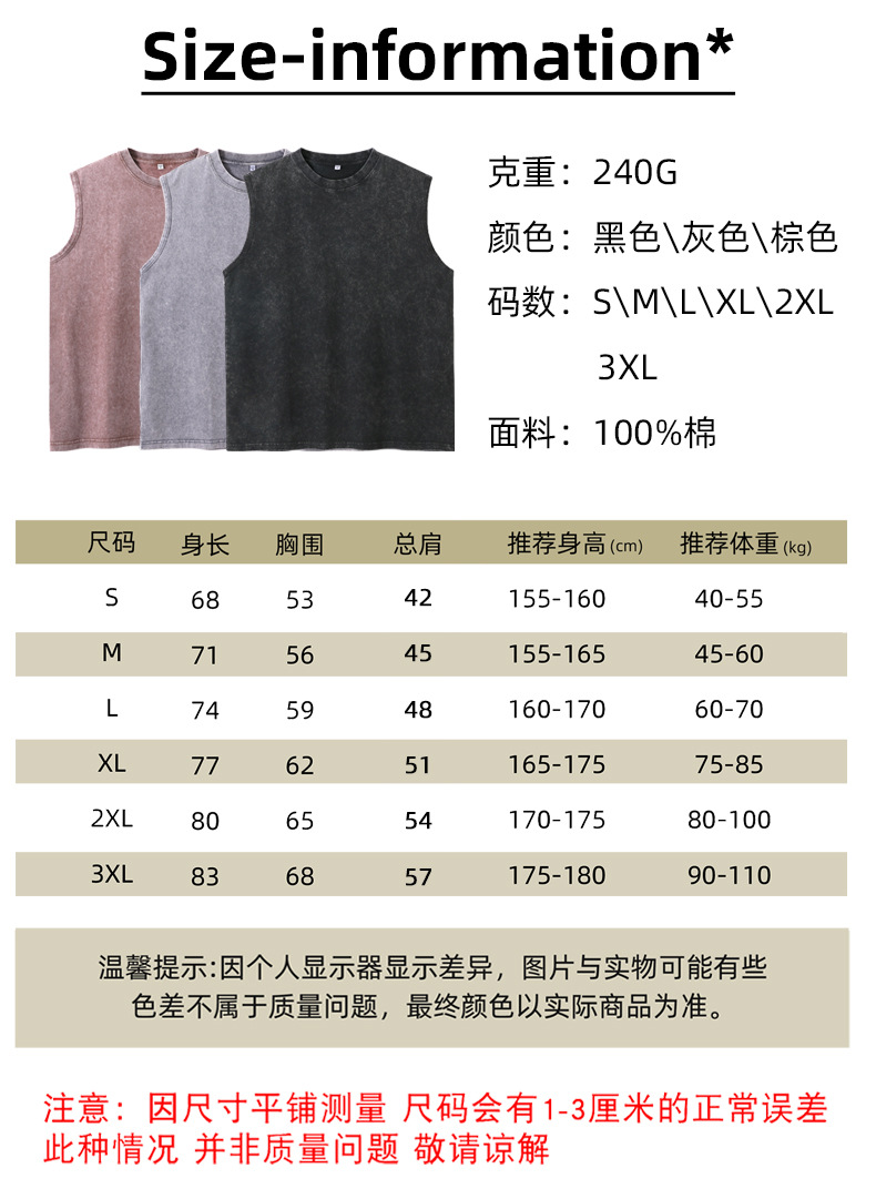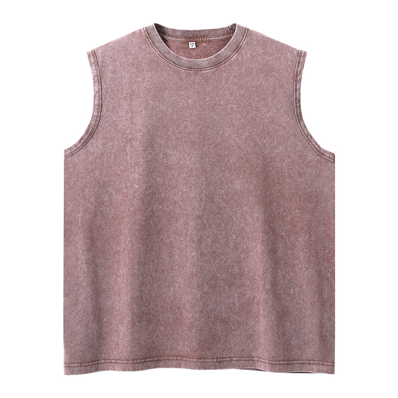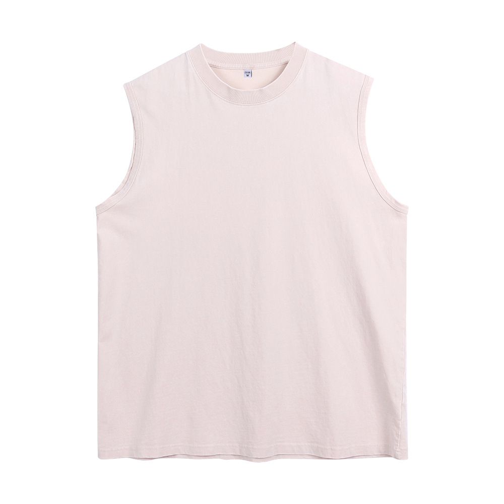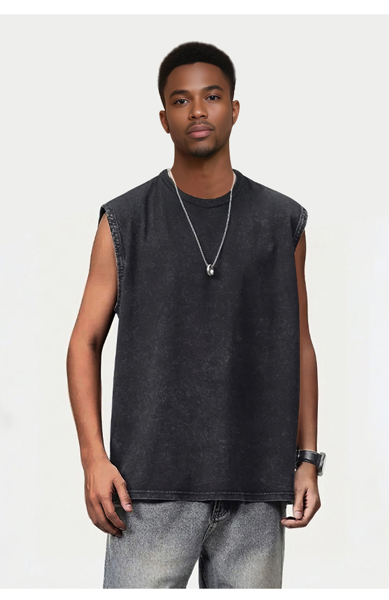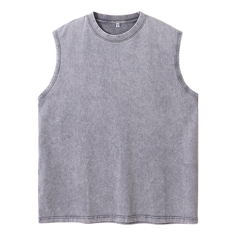 국경 간 미국의 트렌디 한 헤비 코튼 씻은 늙은 남자 조끼 어깨 솔리드 컬러 민소매 패션 브랜드 빈티지 티셔츠