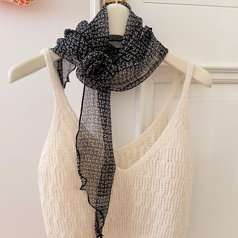 한국식 패션 설문 조사 도트 꽃 실크 스카프 인쇄 고급 올 매치 액세서리 목 여성 헤어 밴드 타이 롱 스카프스토어 가기