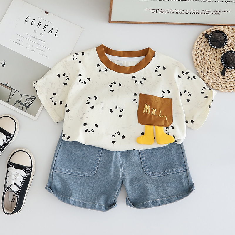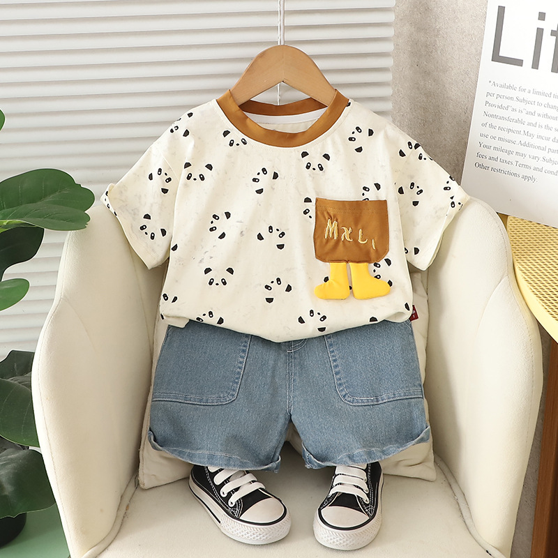 남자들의 여름 세트 2025 새로운 어린이 세트 여름 만화 인쇄 3 차원 소년 반팔 투피스 세트스토어 가기