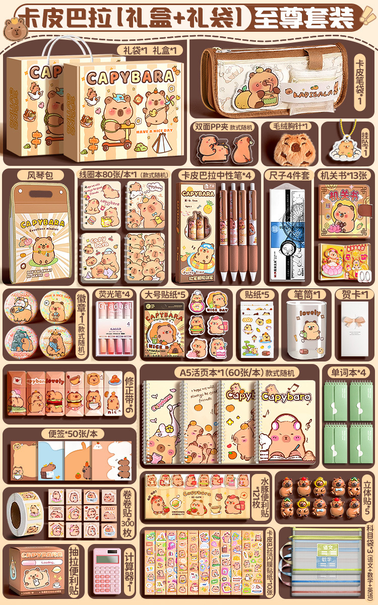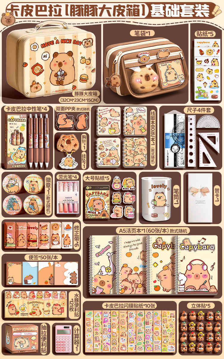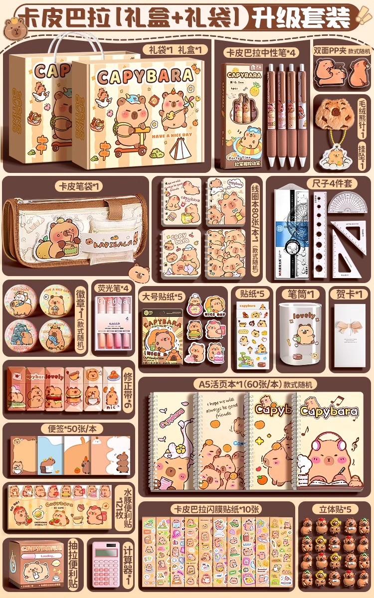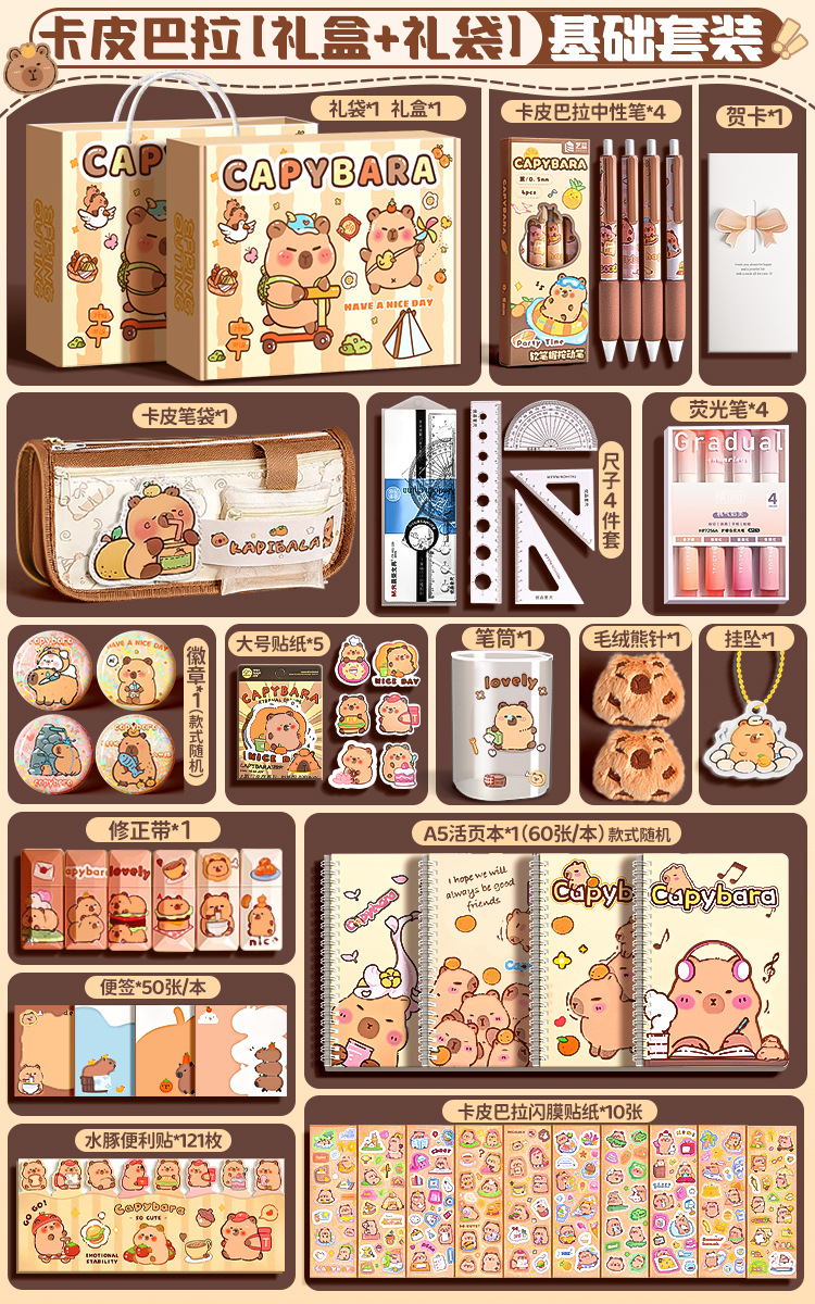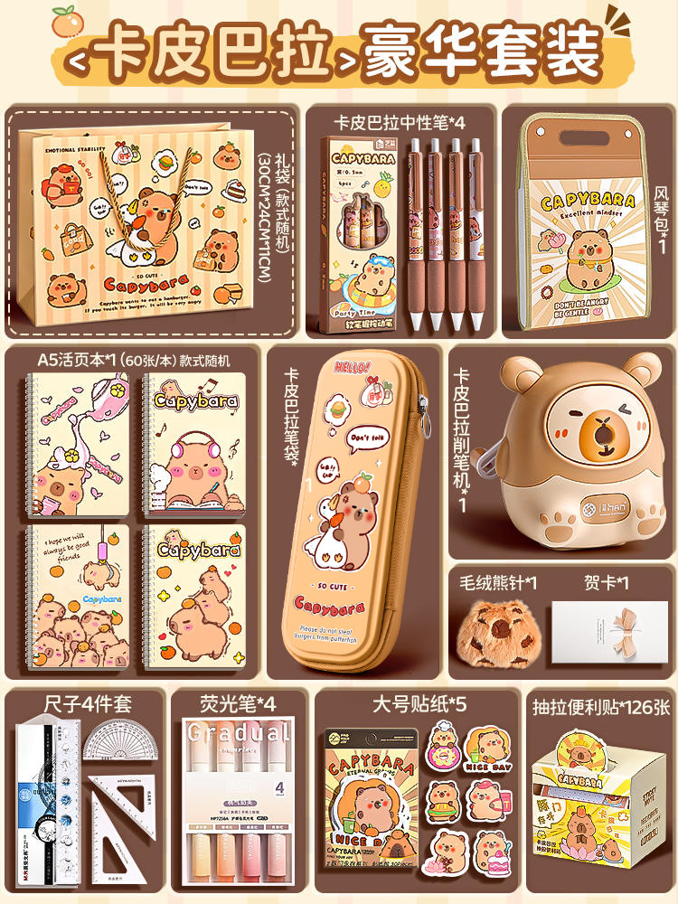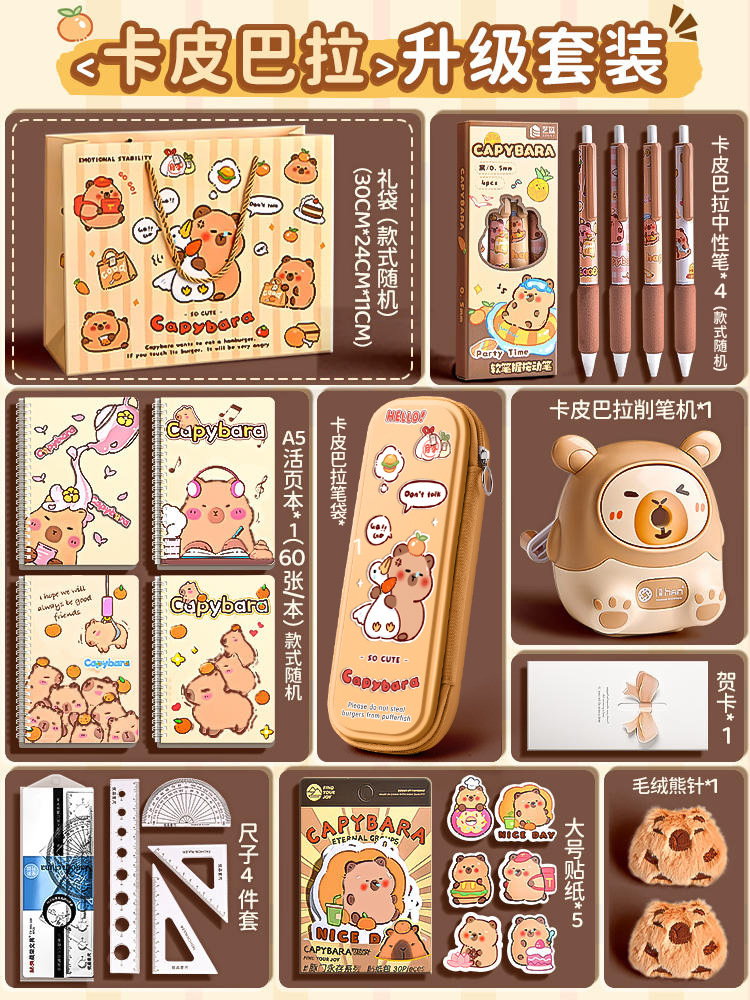 카피 바라 전기 문구 세트 선물 상자 1 학년 오프닝 선물 가방 카피 바 중학교 학생 생일 행사스토어 가기