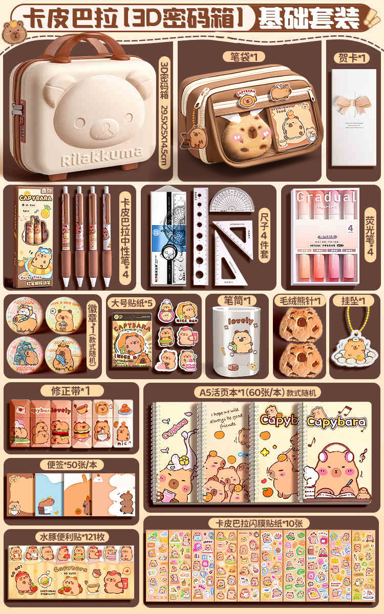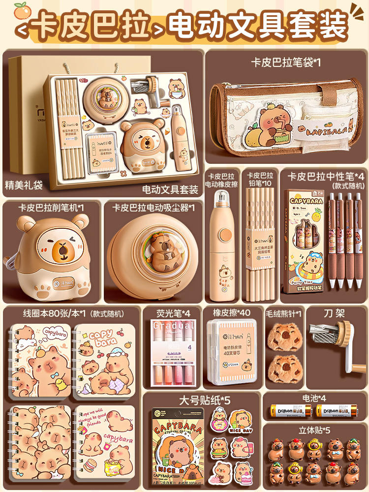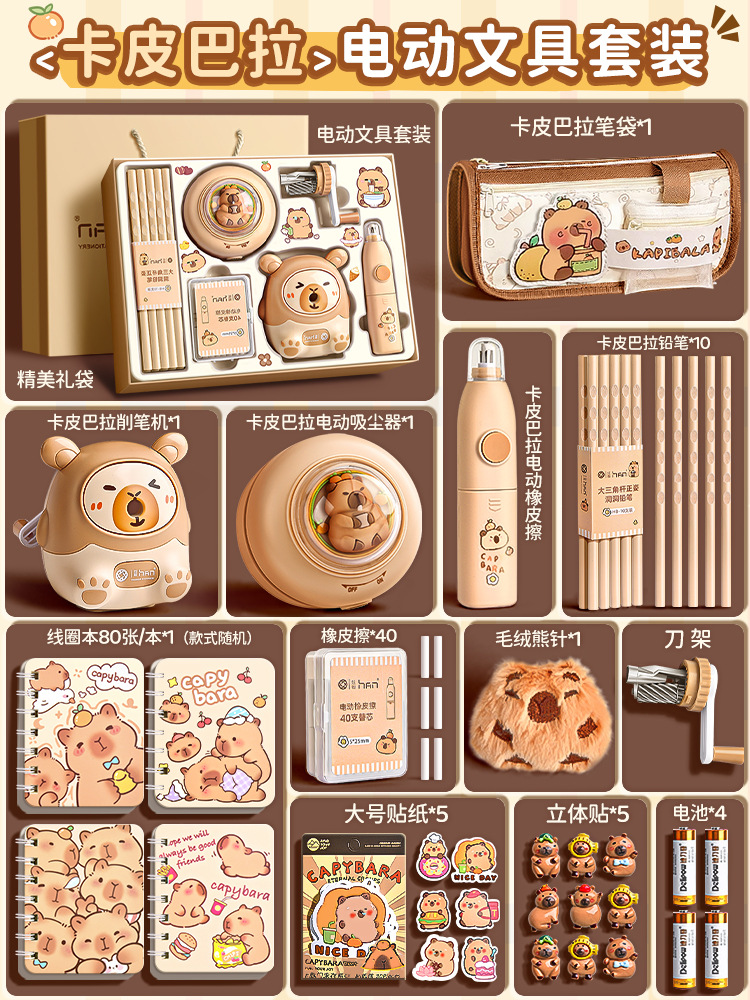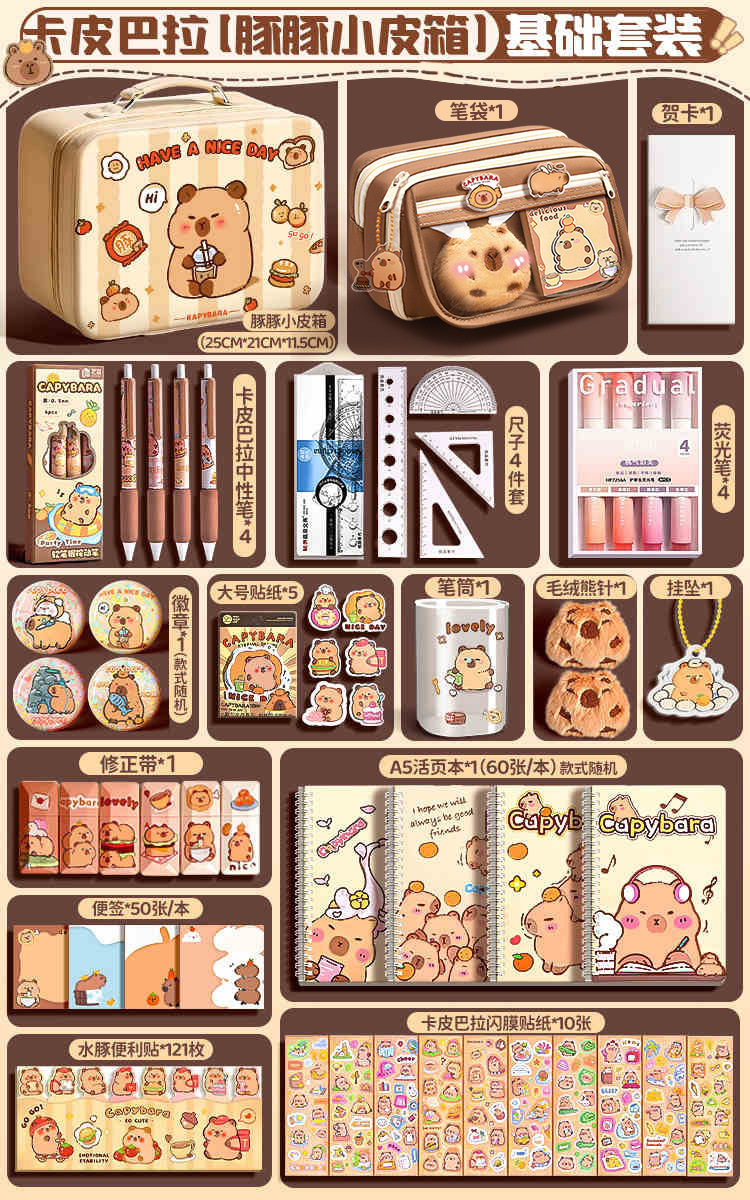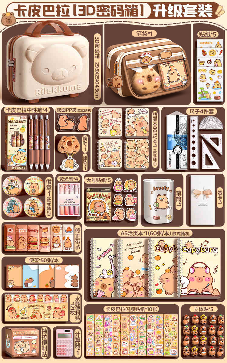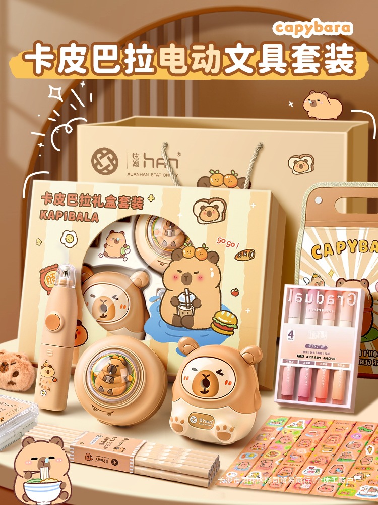 카피 바라 전기 문구 세트 선물 상자 1 학년 오프닝 선물 가방 카피 바 중학교 학생 생일 행사스토어 가기