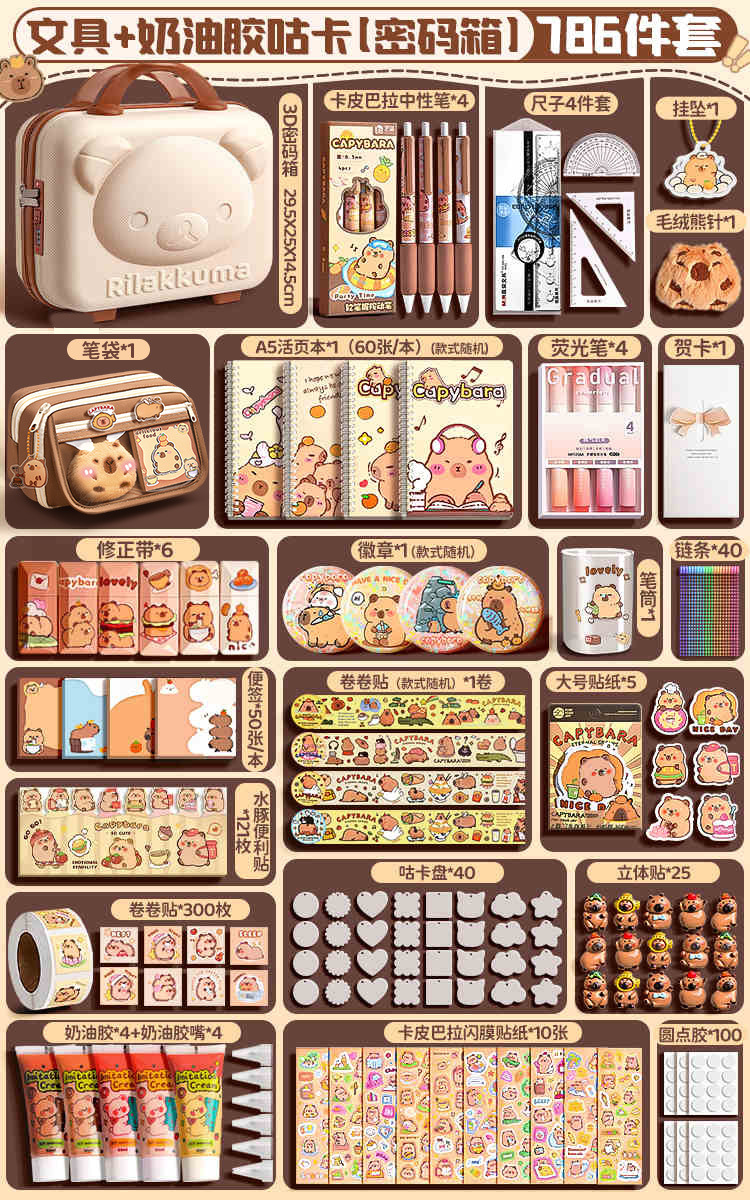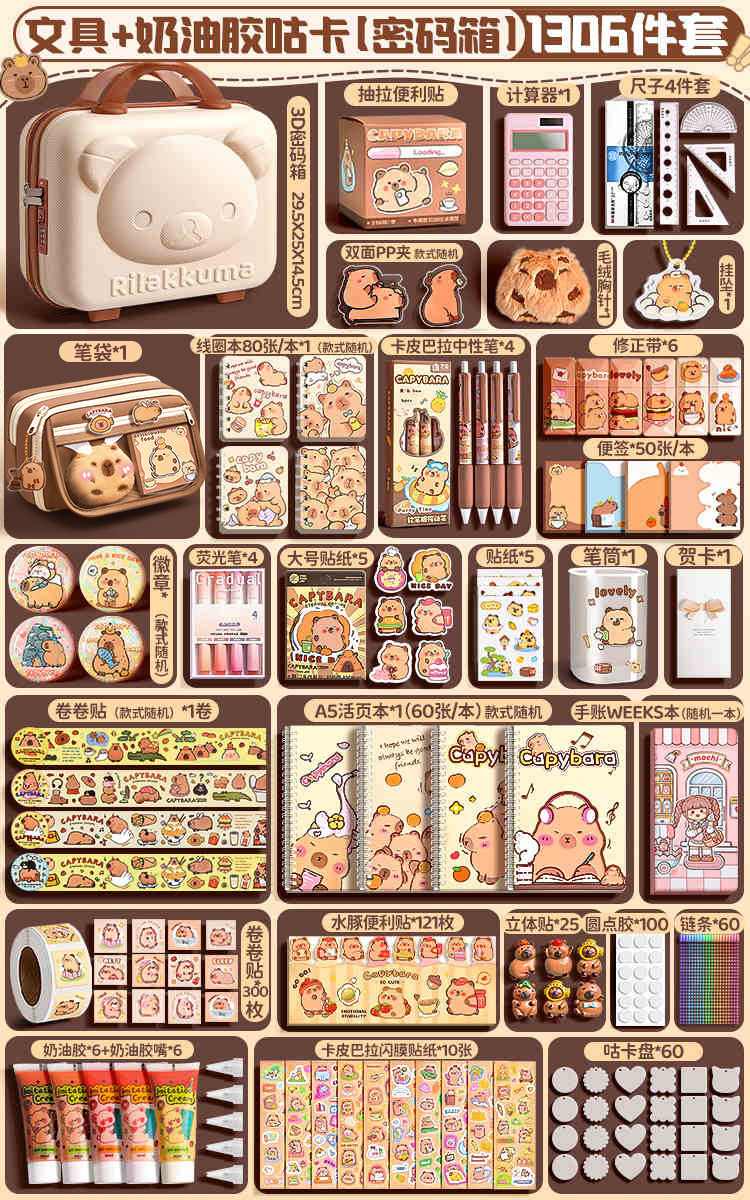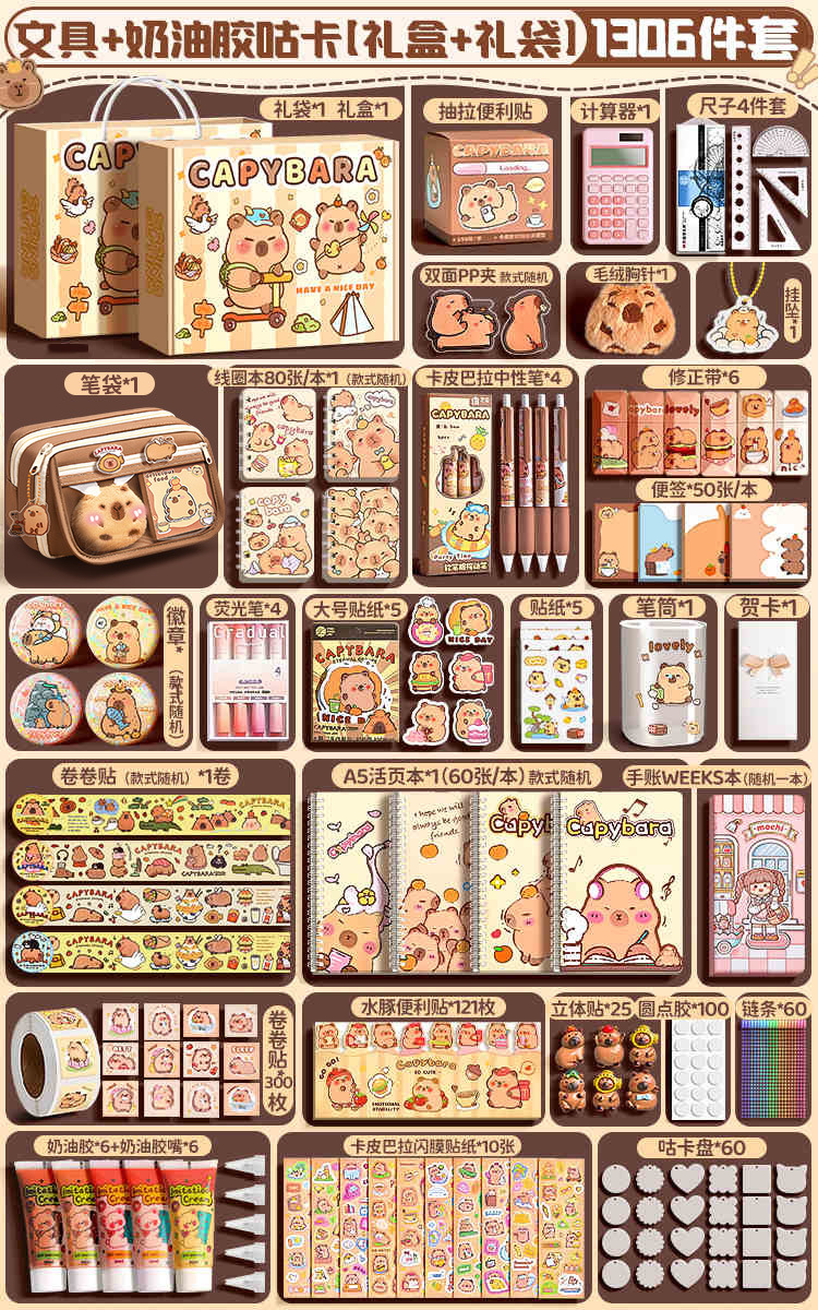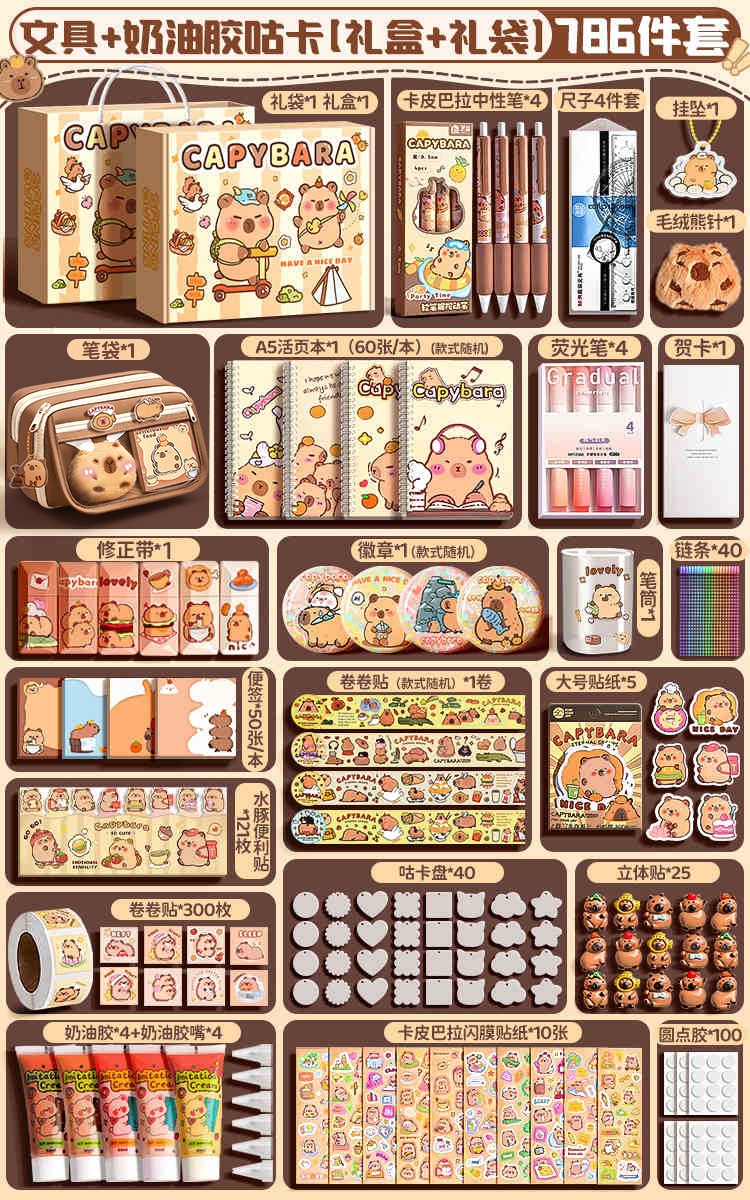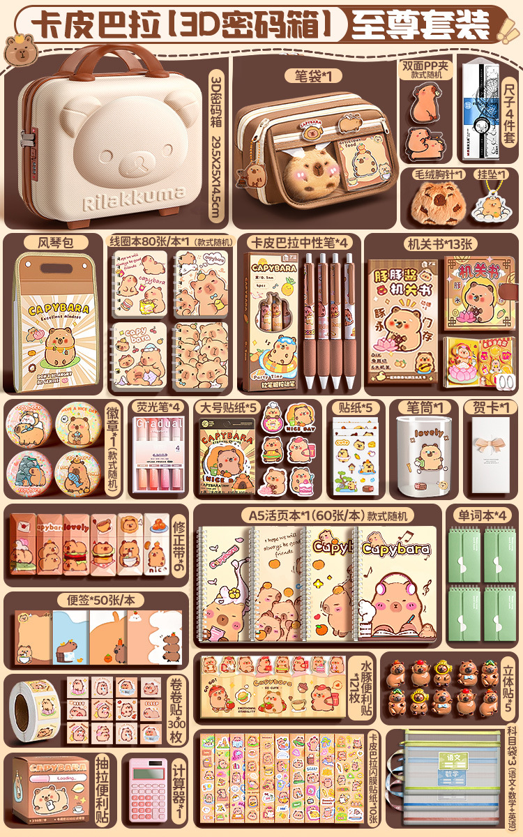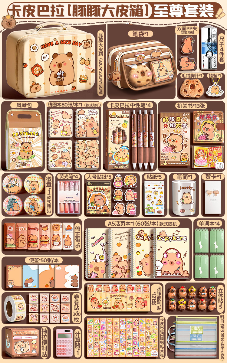 카피 바라 전기 문구 세트 선물 상자 1 학년 오프닝 선물 가방 카피 바 중학교 학생 생일 행사스토어 가기
