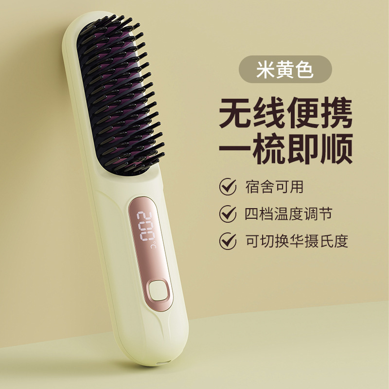 무선 LCD 디지털 디스플레이 스트레이트 헤어 빗 USB 충전 세라믹 난방 네거티브 이온 전기 빗 휴대용 미니 헤어 스트레이트너