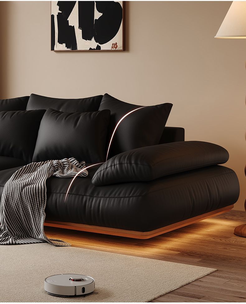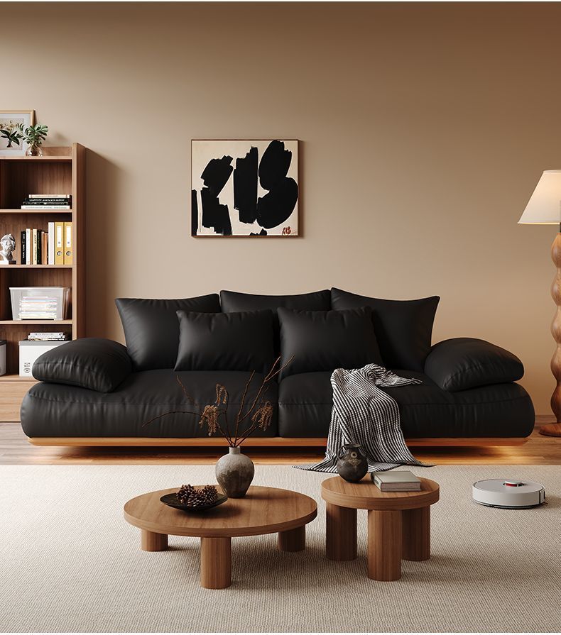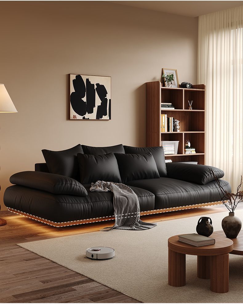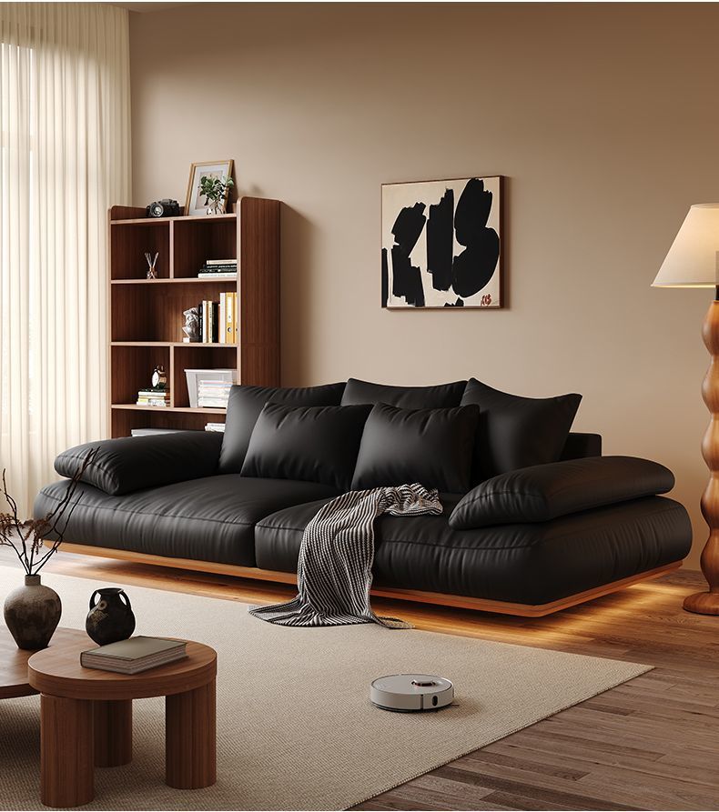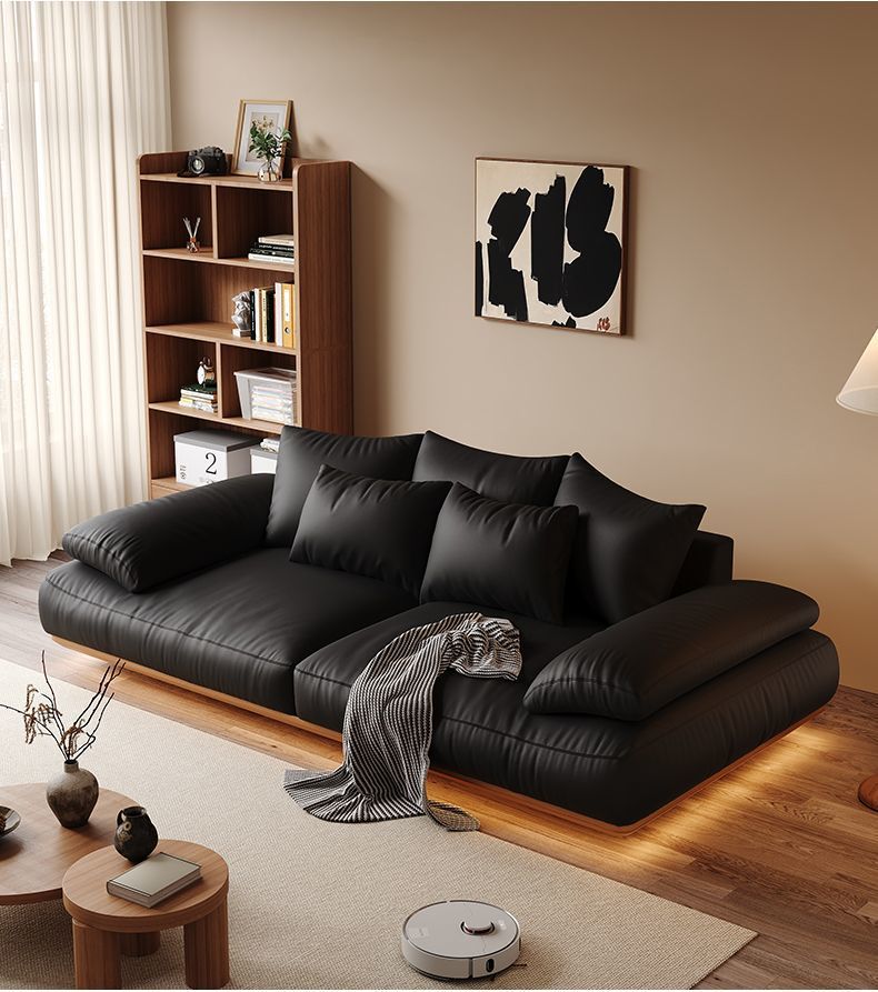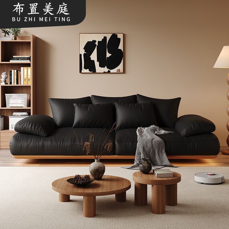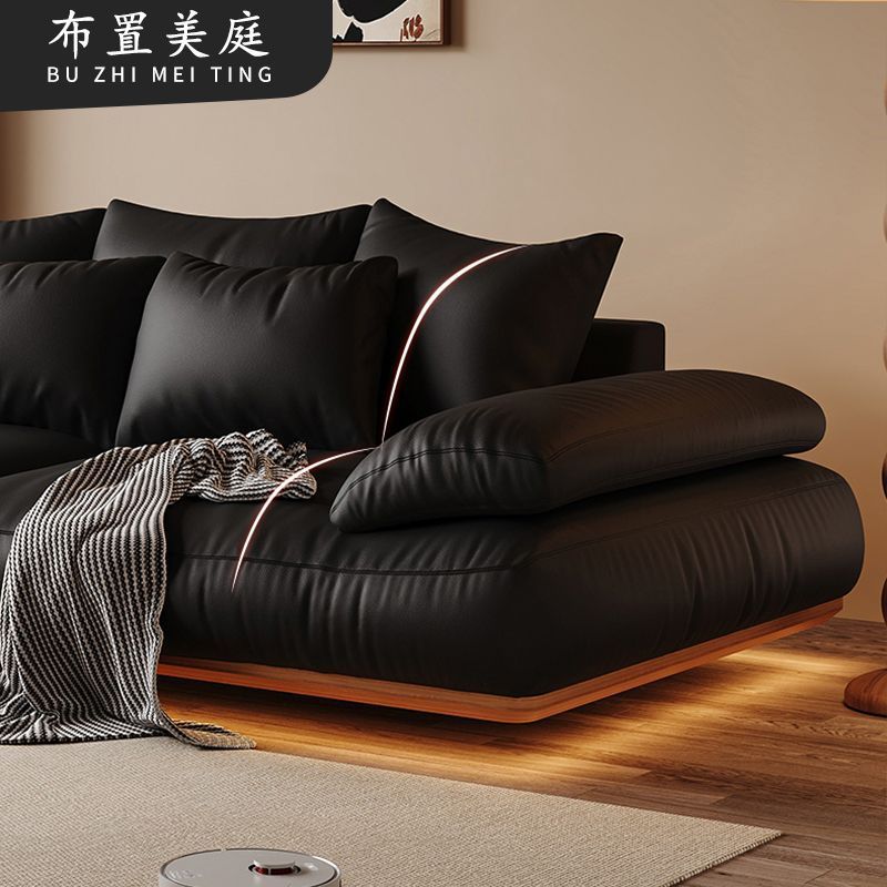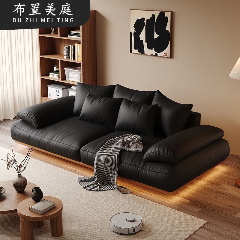로그 스타일 서스펜션 미니멀리스트 소파 스트레이트 로우 작은 아파트 거실 일본식 간단한 3 인용 가죽 소파스토어 가기