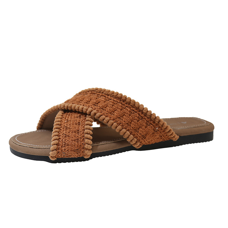 여성을위한 부드러운 프랑스 복고풍 요정 스타일 샌들 2025 봄, 여름 한국 스타일 해변 휴가 여성을위한 부드러운 밑창 슬리퍼