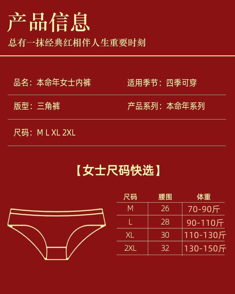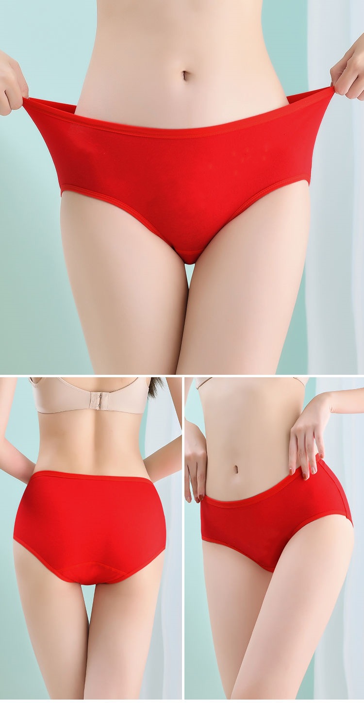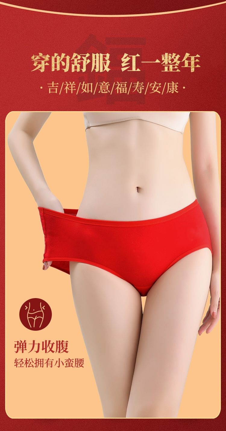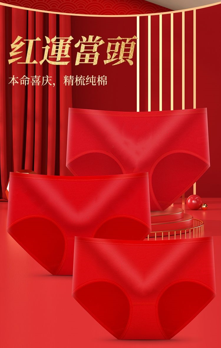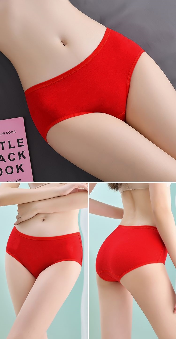여성 속옷 중간 허리 면화 생활 년 빅 레드 웨딩 축제 여성 면화 학생 엉덩이 브리프스토어 가기