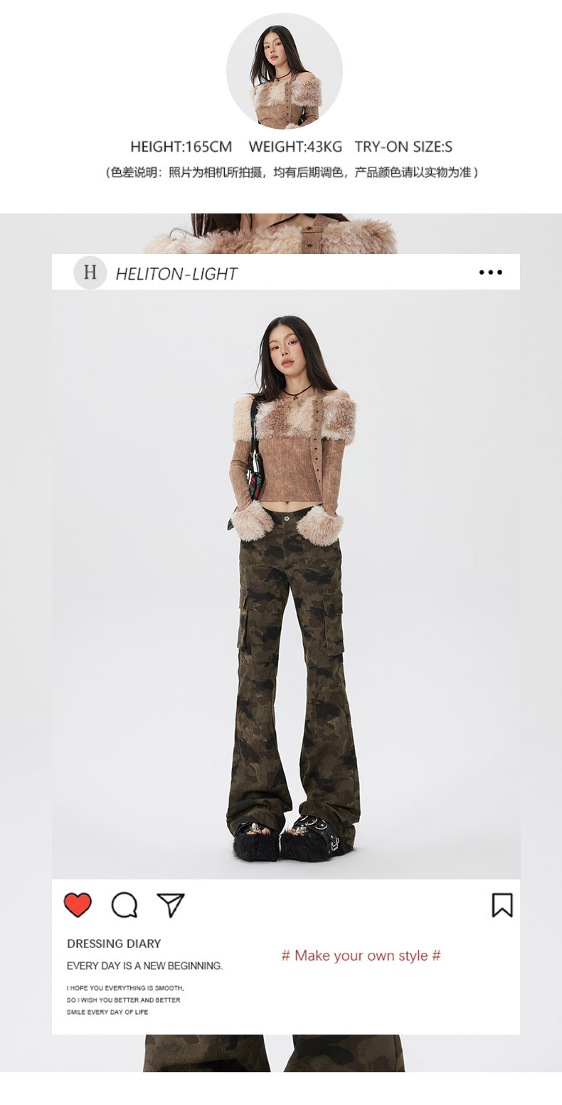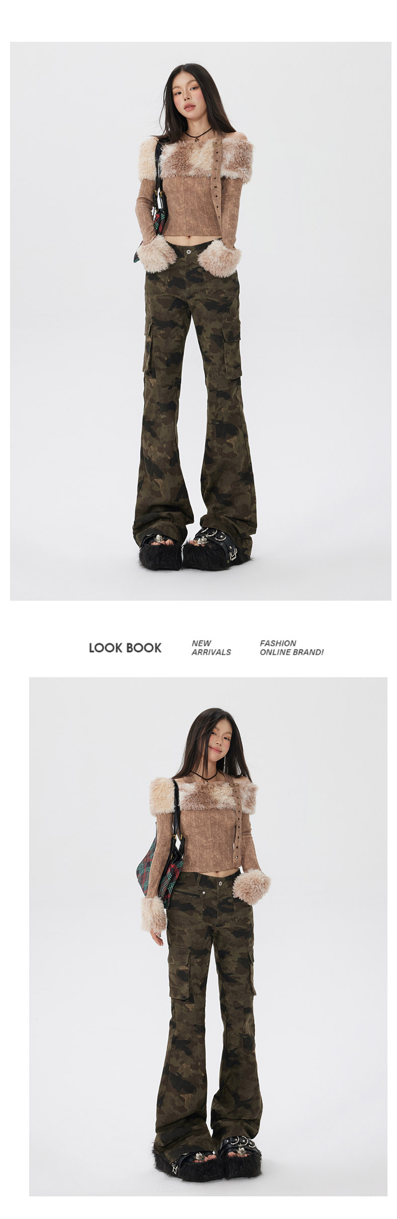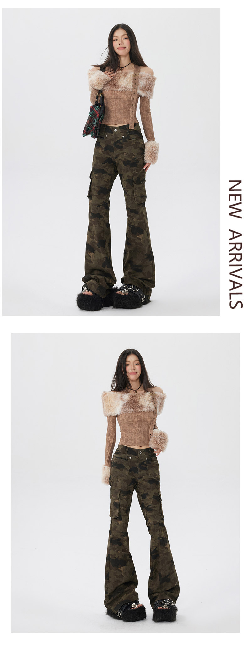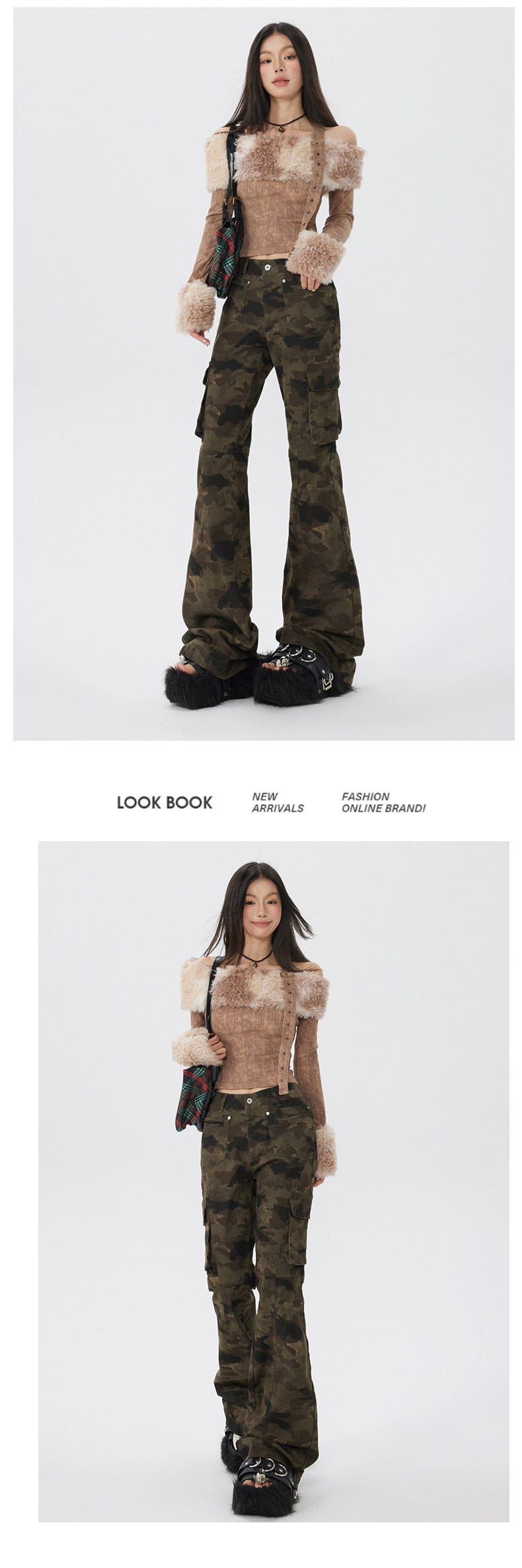 YD @ 레트로 마이크로 위장 바지 2024 가을/겨울 슬림 말굽 플레어 바지 위장 정사이즈