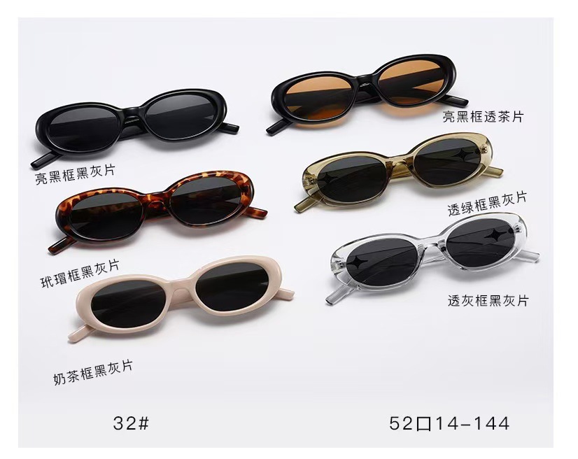 2023 새로운 한국 스타일 독특한 선글라스 여성 레트로 블랙 티 타원형 프레임 선글라스 사이버 연예인 거리 사진 촬영 선 스크린 안경