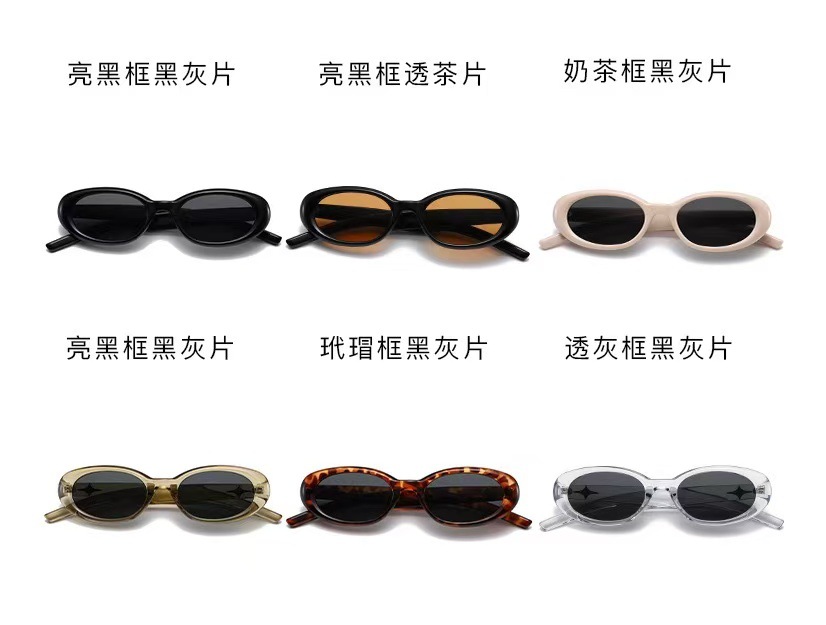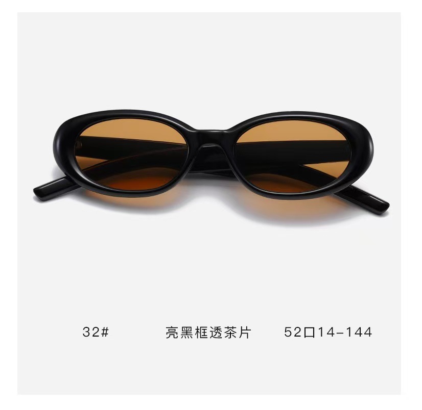 2023 새로운 한국 스타일 독특한 선글라스 여성 레트로 블랙 티 타원형 프레임 선글라스 사이버 연예인 거리 사진 촬영 선 스크린 안경스토어 가기
