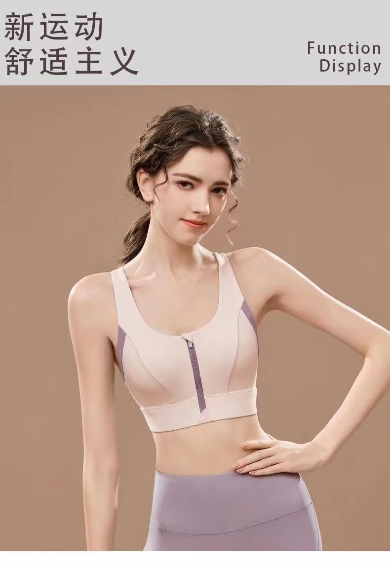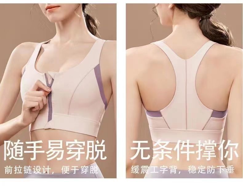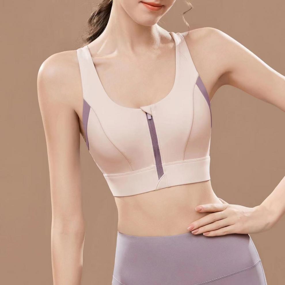 여성용 고강도 앞 지퍼 컬러 블록 스포츠 브라, 착탈이 용이한 여성용 충격 방지 요가 브라, 런닝 조끼, 공장 공급스토어 가기