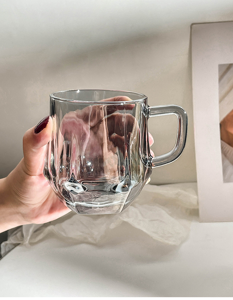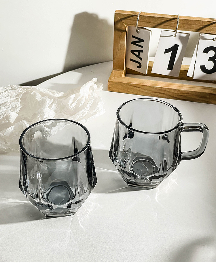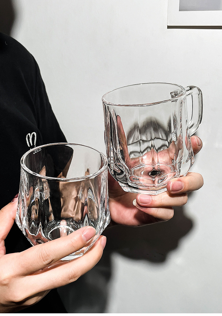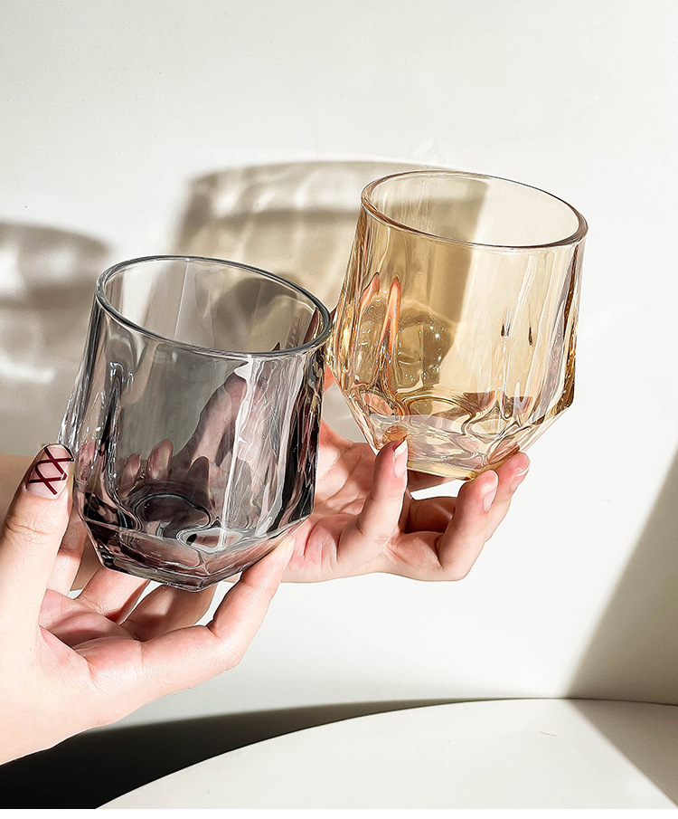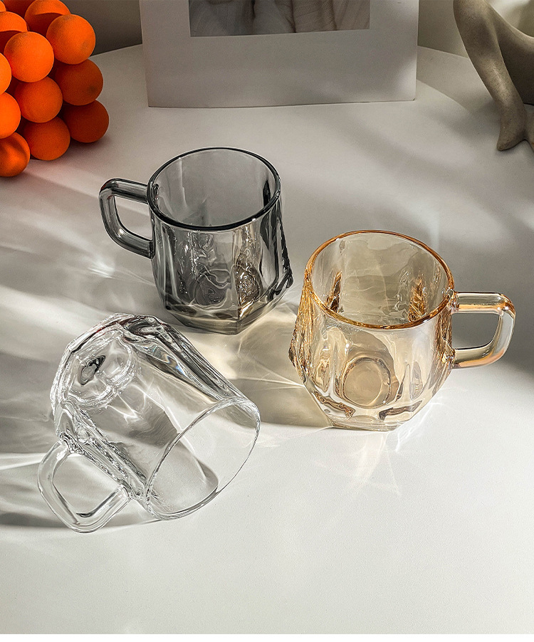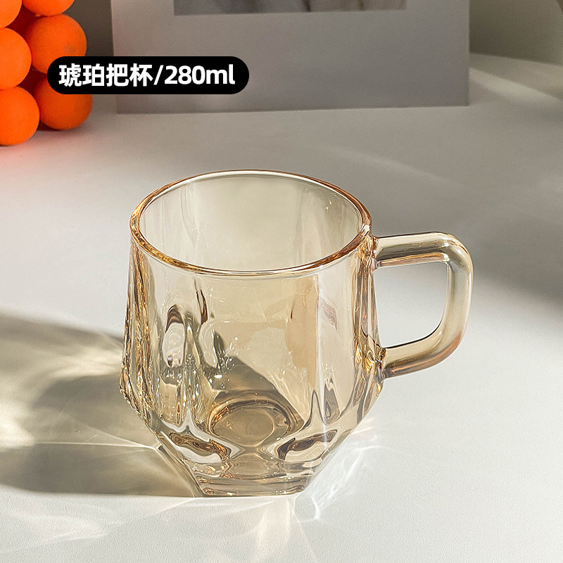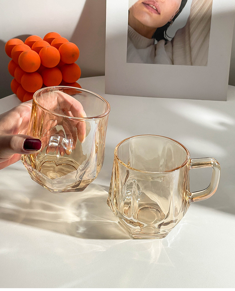 가정용 호텔 양치컵 거실용 음료컵 기념품 육각컵 호박색 손잡이컵 유리컵 도매 맞춤 제작스토어 가기