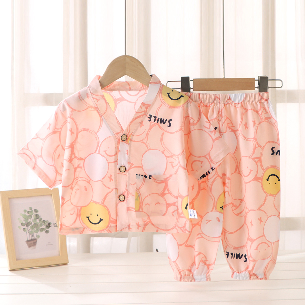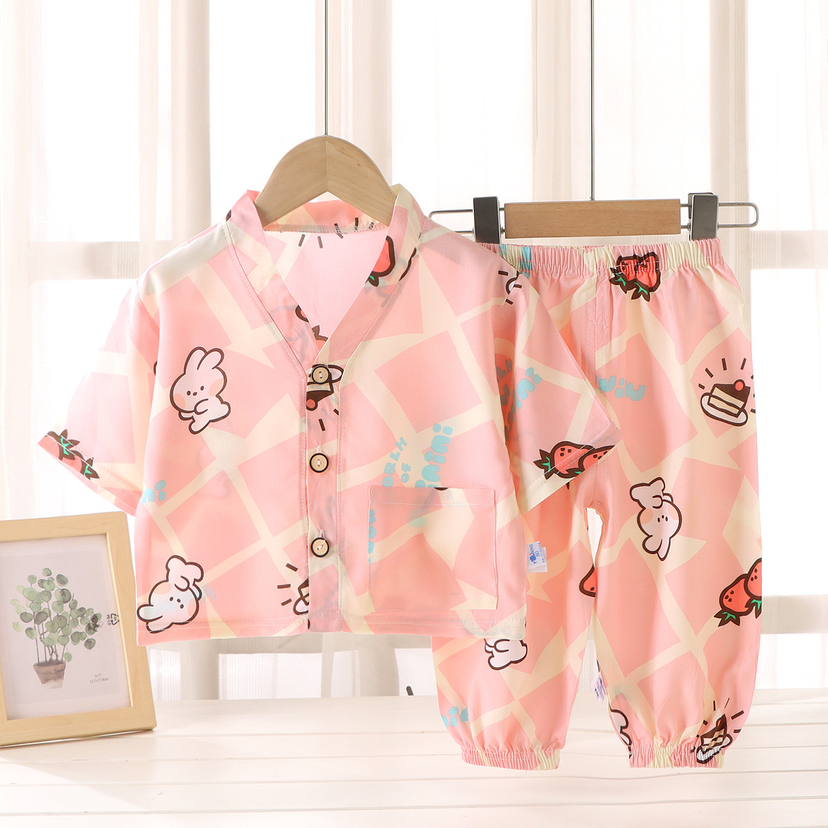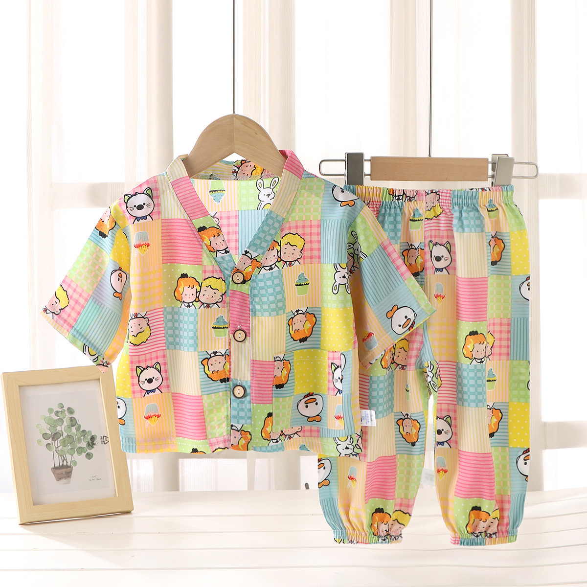 어린이 홈 의류 코튼 세트 여름 잠옷 남학생과 여자를위한 인공 면 2 피스 코튼 실크 에어컨 의류 아동복스토어 가기