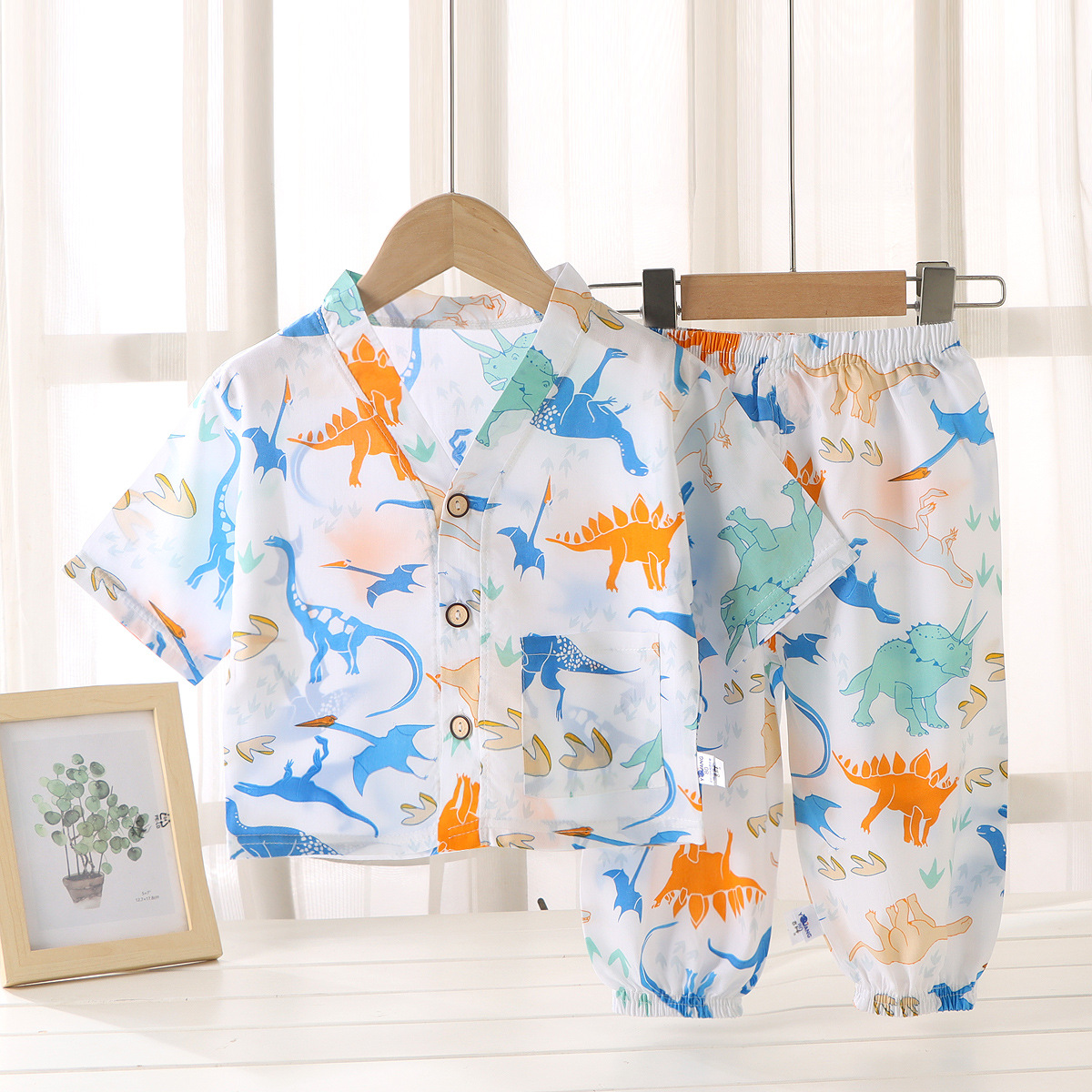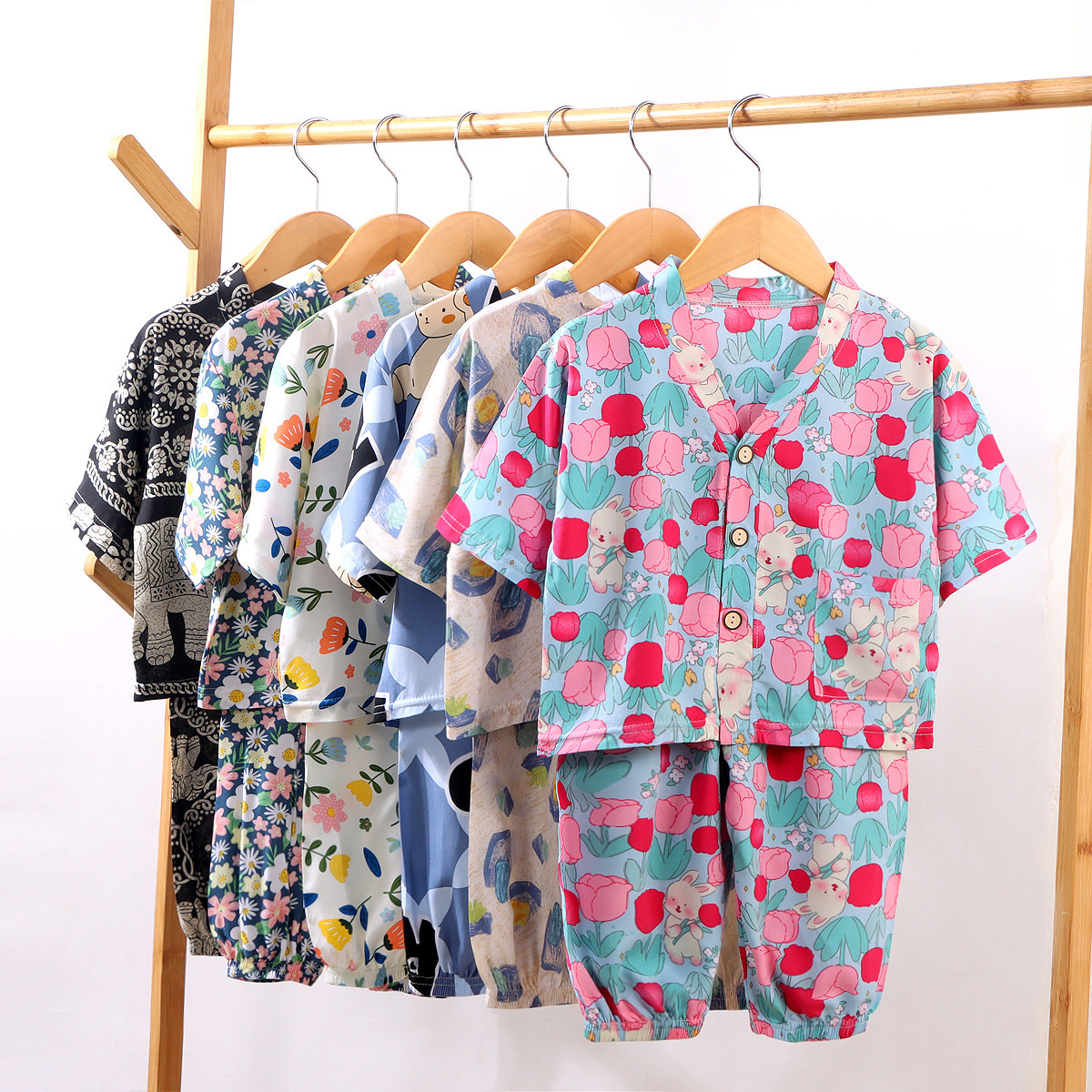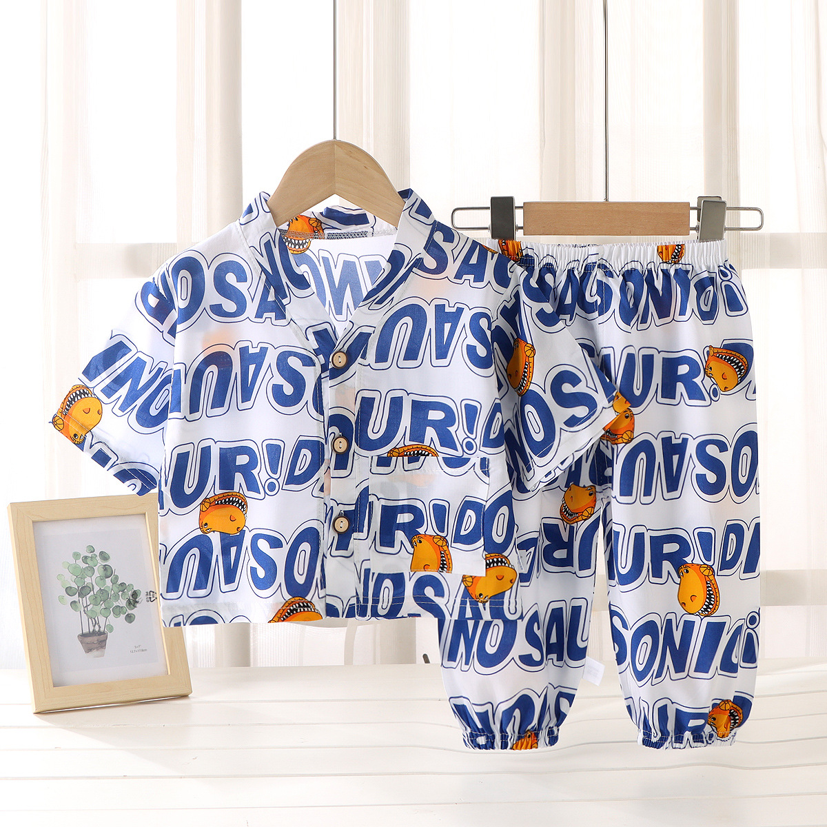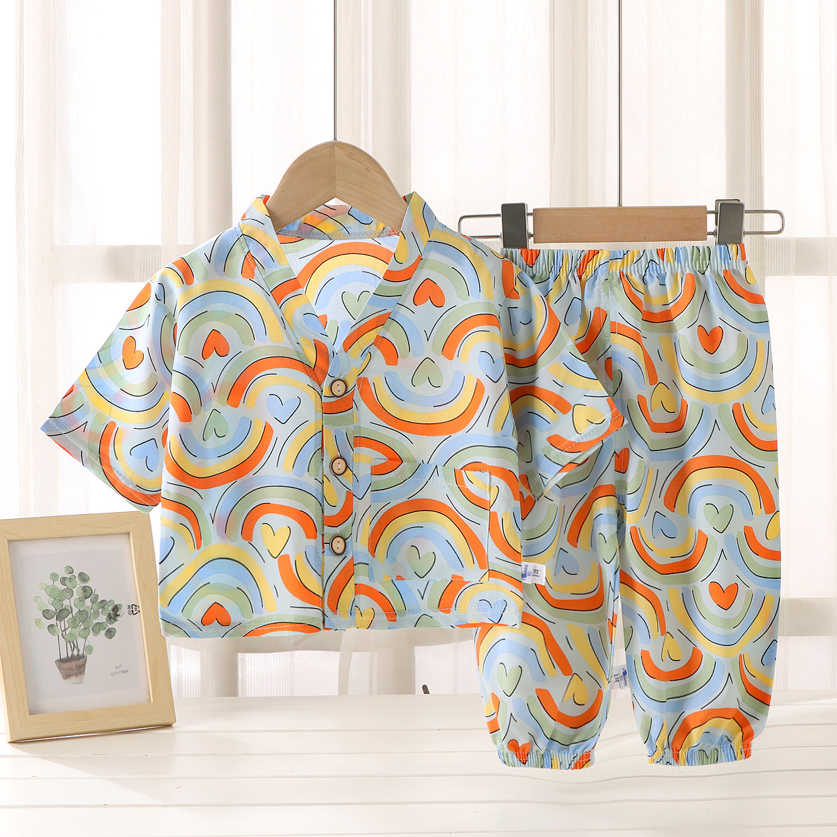 어린이 홈 의류 코튼 세트 여름 잠옷 남학생과 여자를위한 인공 면 2 피스 코튼 실크 에어컨 의류 아동복스토어 가기