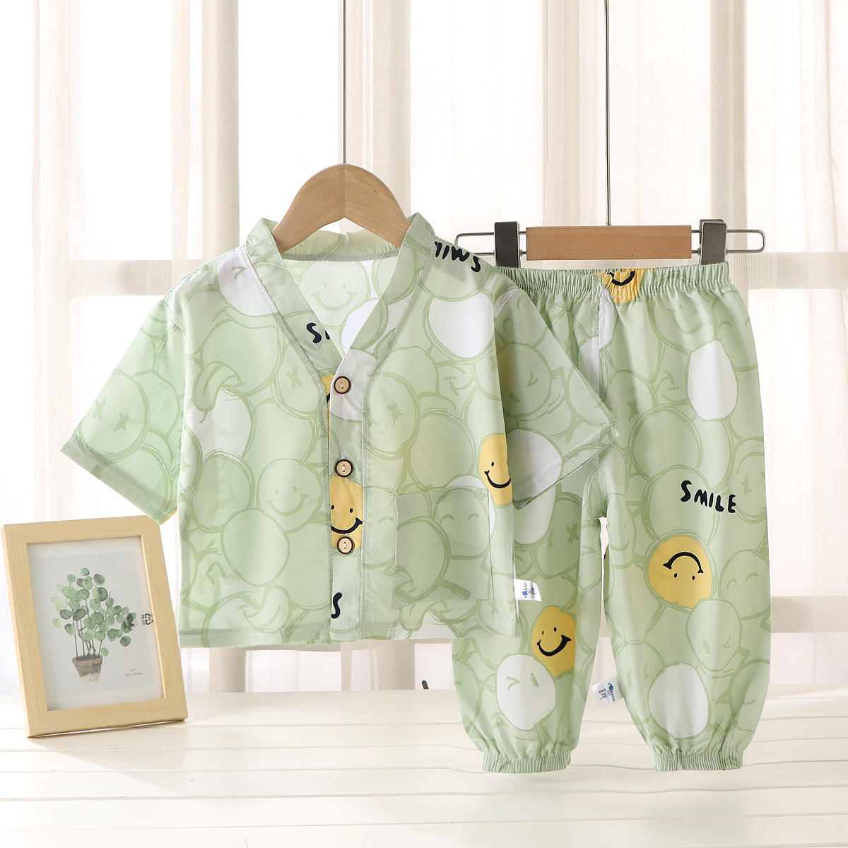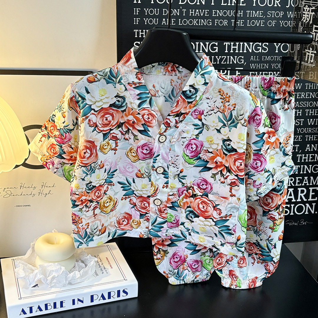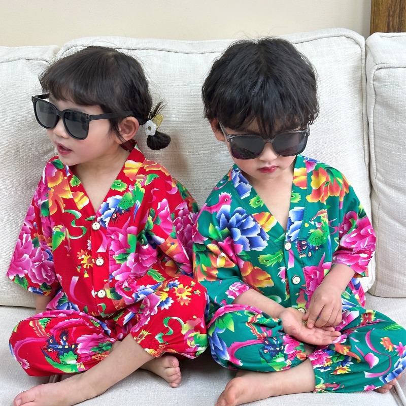 어린이 홈 의류 코튼 세트 여름 잠옷 남학생과 여자를위한 인공 면 2 피스 코튼 실크 에어컨 의류 아동복