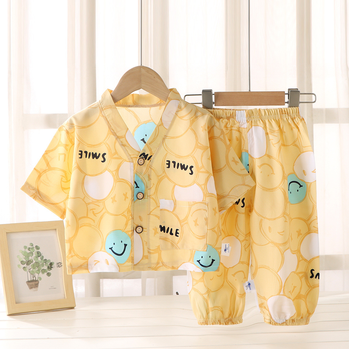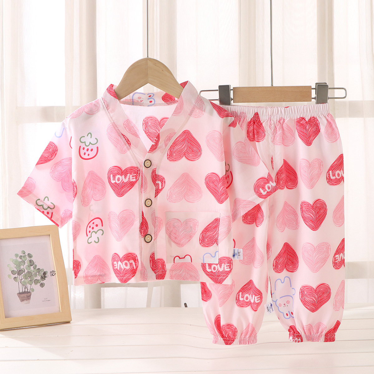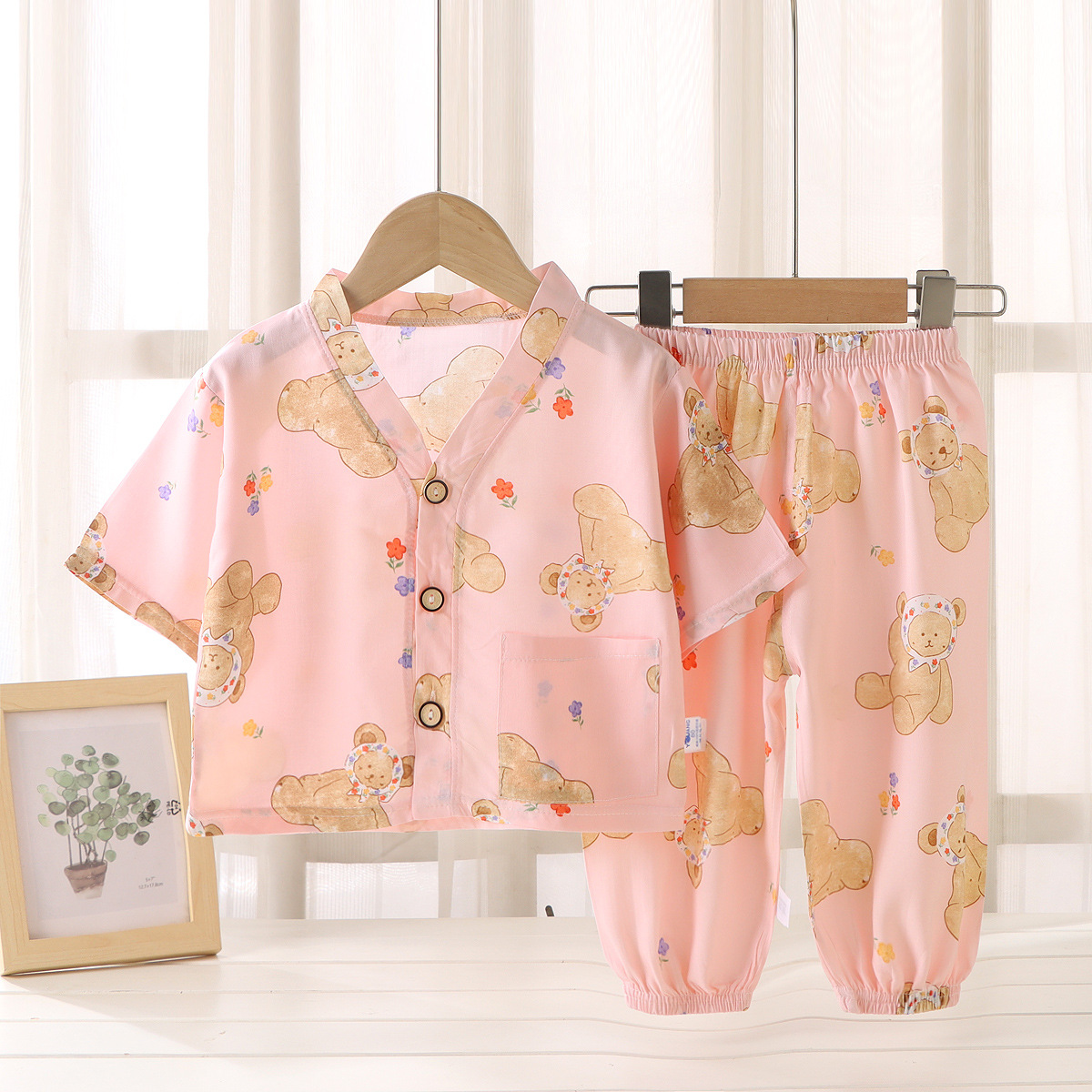 어린이 홈 의류 코튼 세트 여름 잠옷 남학생과 여자를위한 인공 면 2 피스 코튼 실크 에어컨 의류 아동복