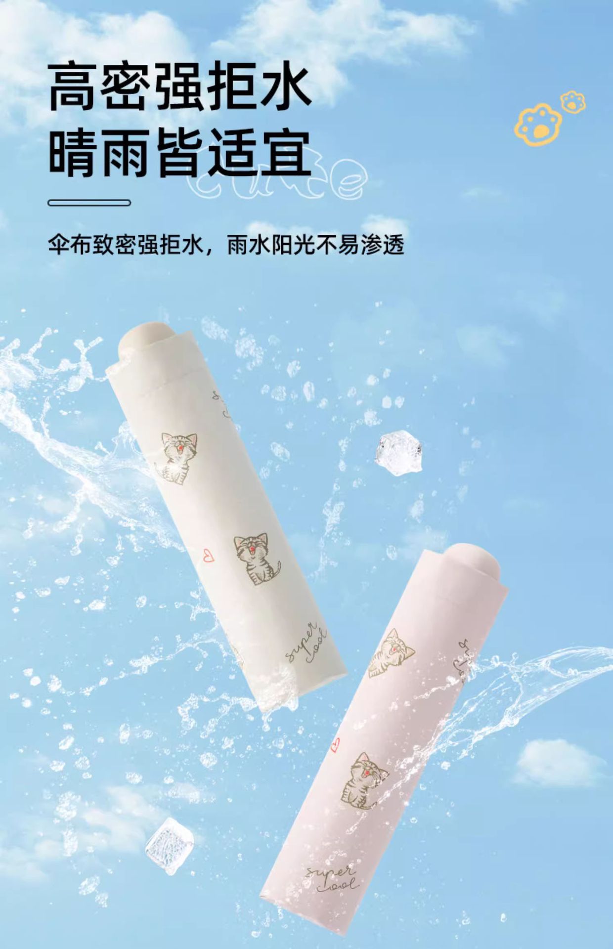 도매 파라다이스 우산 33945E 멋진 고양이 세 배 우산 검은 접착제 안티 자외선 태양 우산 여성 인쇄 로고 단어
