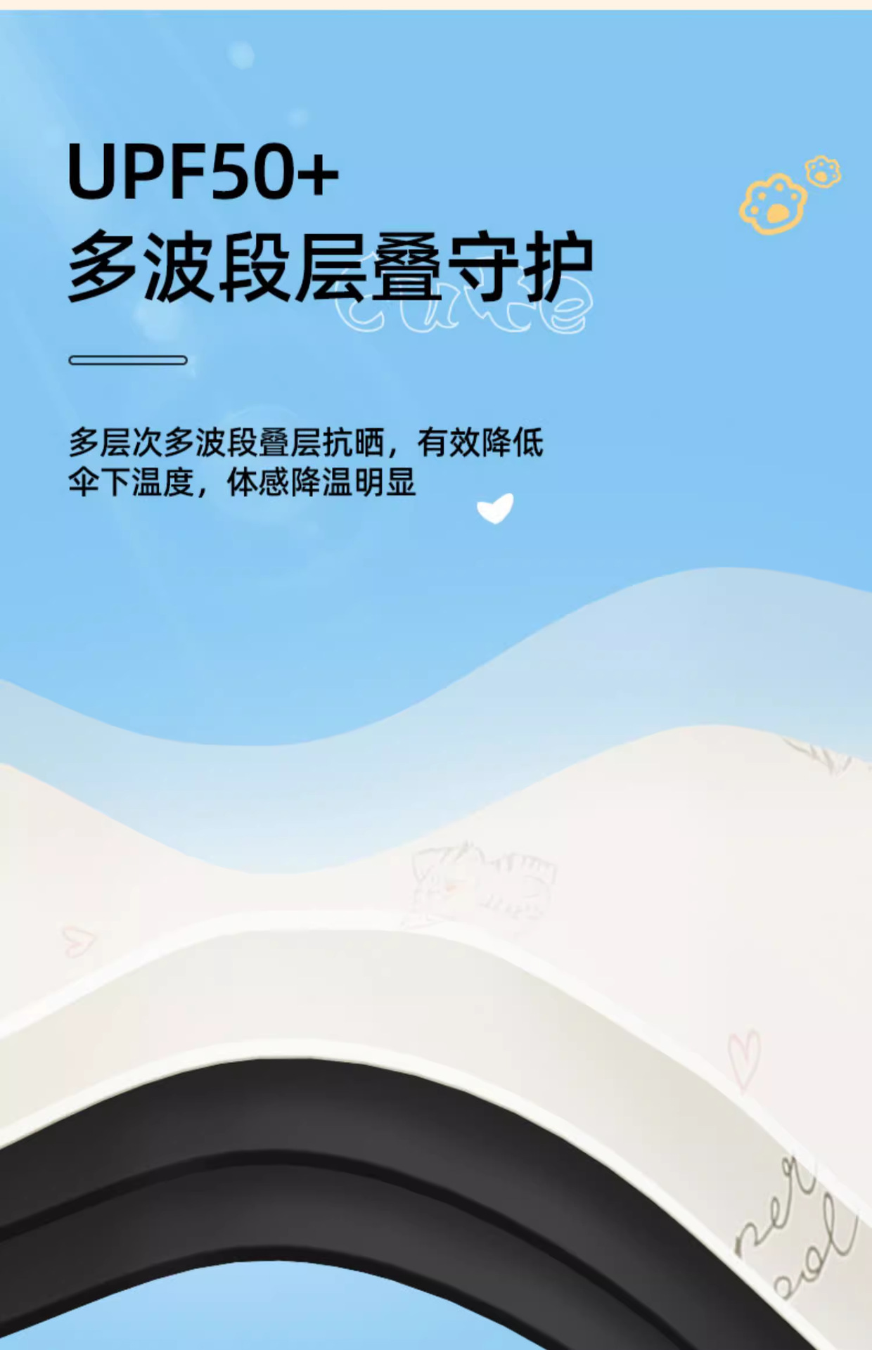 도매 파라다이스 우산 33945E 멋진 고양이 세 배 우산 검은 접착제 안티 자외선 태양 우산 여성 인쇄 로고 단어스토어 가기