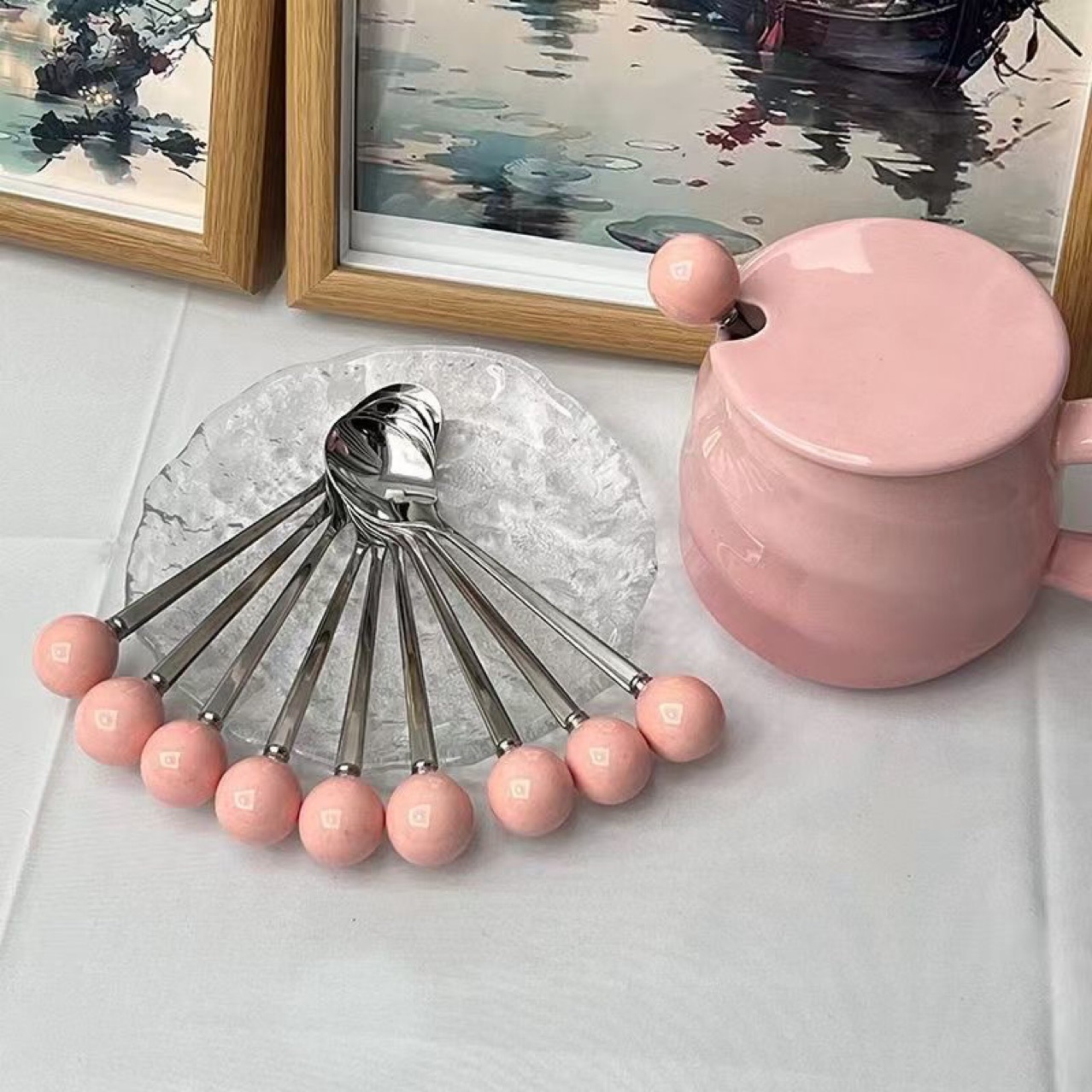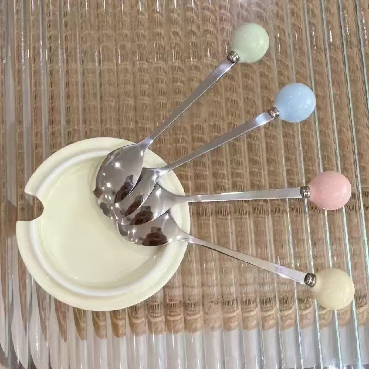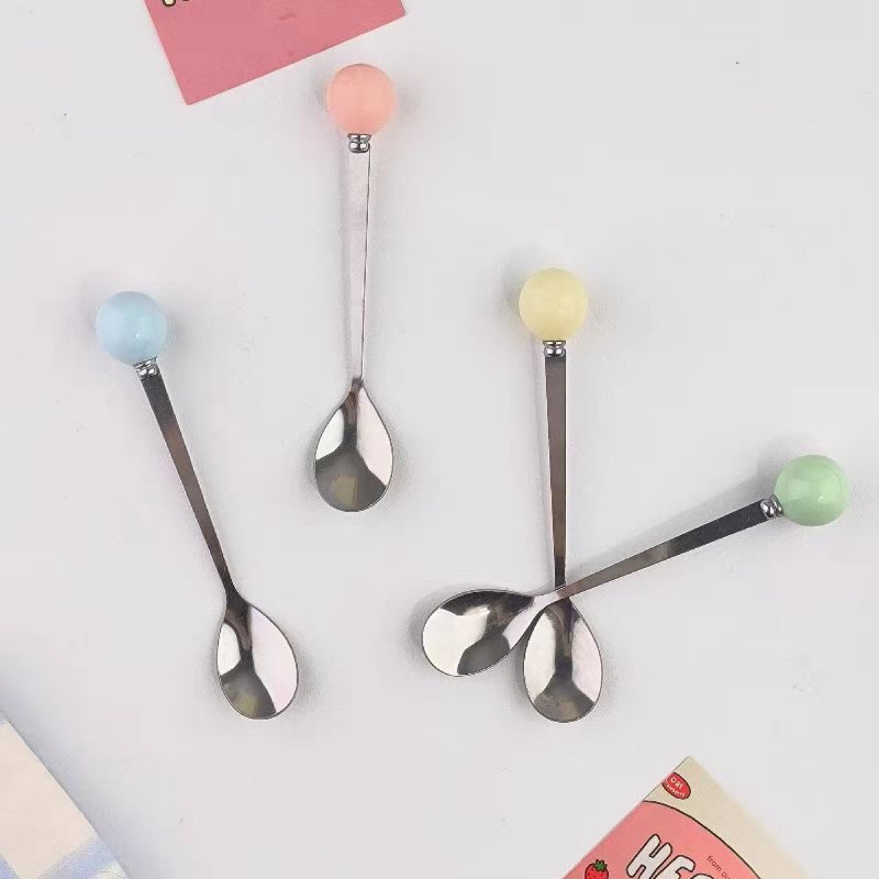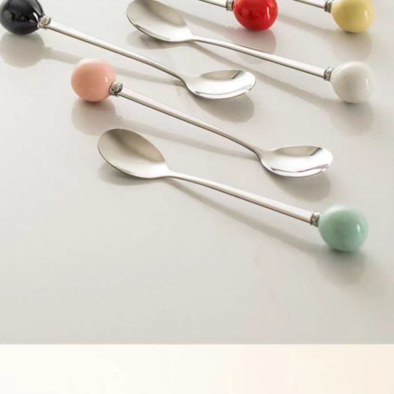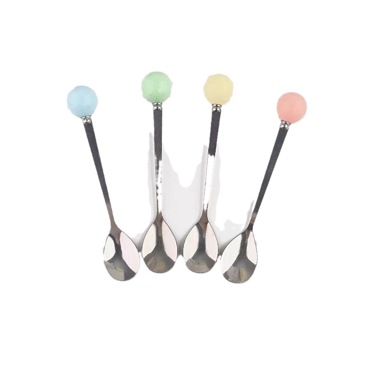 공장 직접 공급 세라믹 스테인레스 스틸 마카롱 색상 창조적 인 스테인레스 스틸 과일 포크 스테인레스 스틸 세라믹 혼합 숟가락