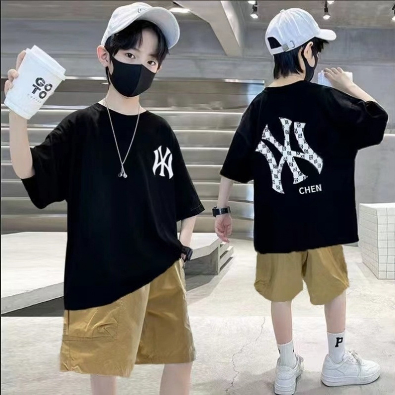 싱글/세트 보이즈 2024 뉴 여름 반팔 프라이드 스트리트 보이즈 투피스 세트 외국 스타일 어린이 잘 생긴 쿨 투피스 세트스토어 가기