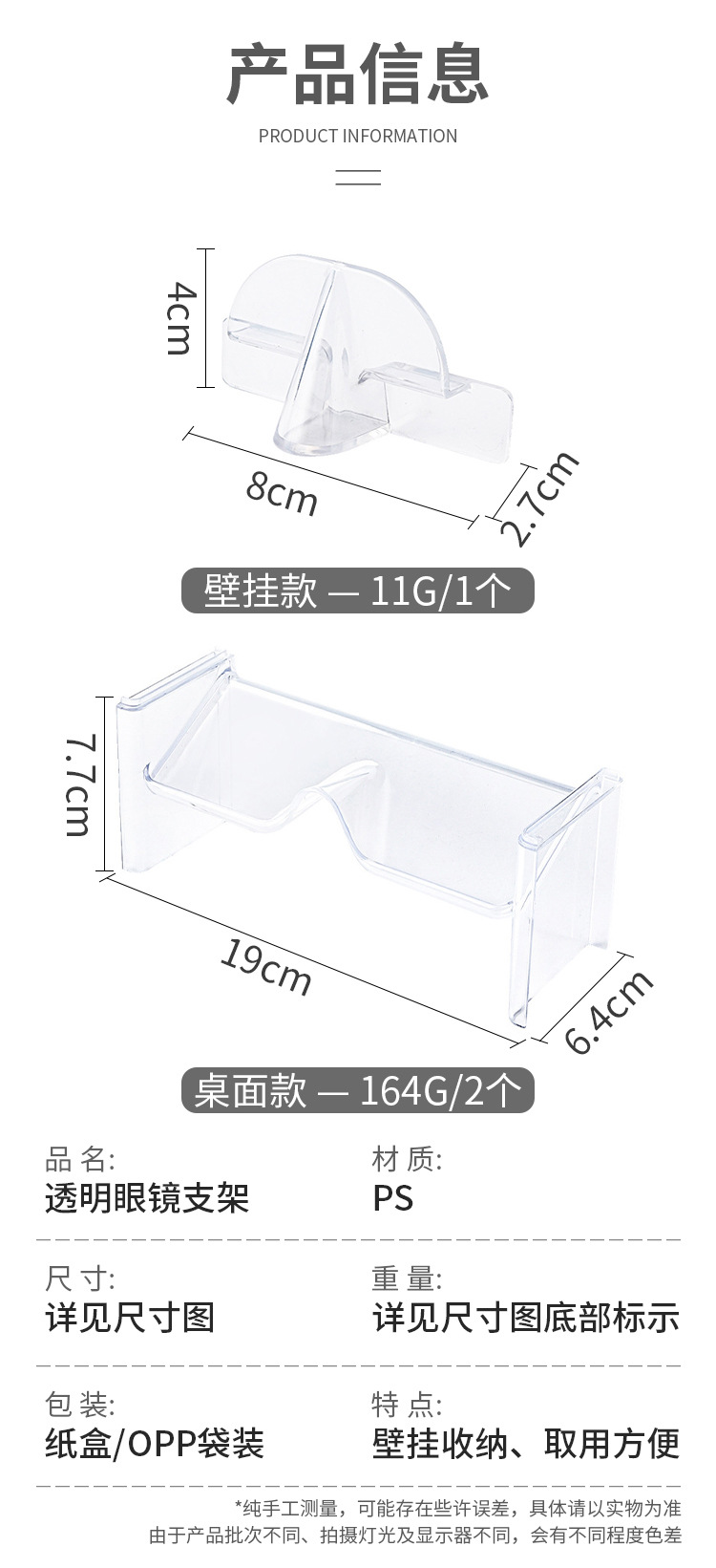 투명 안경 보관대, 욕실 침대 옆 벽걸이 선글라스 진열대, 무타공 거치대, 해외 배송