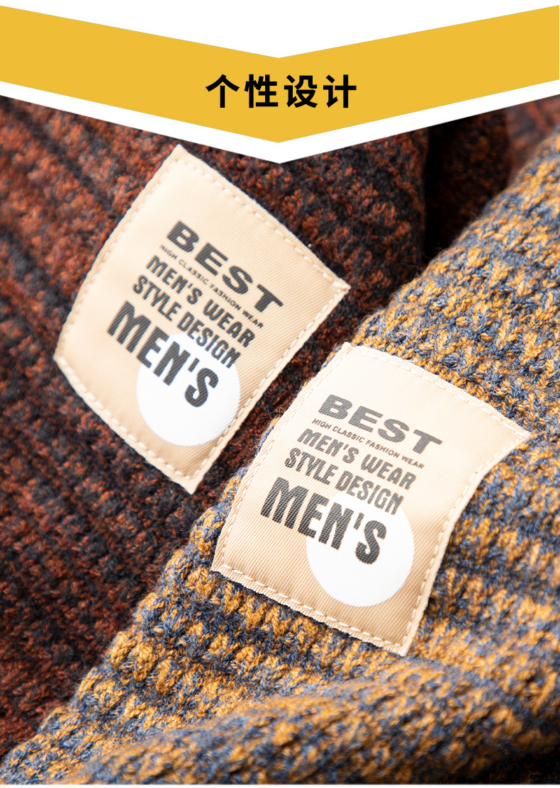 트렌디 한 2 색 원사 하프 터틀넥 스웨터 남자 슬림 핏 2025 가을 및 겨울 새로운 두꺼운 따뜻한 미드 칼라 캐주얼 스웨터스토어 가기