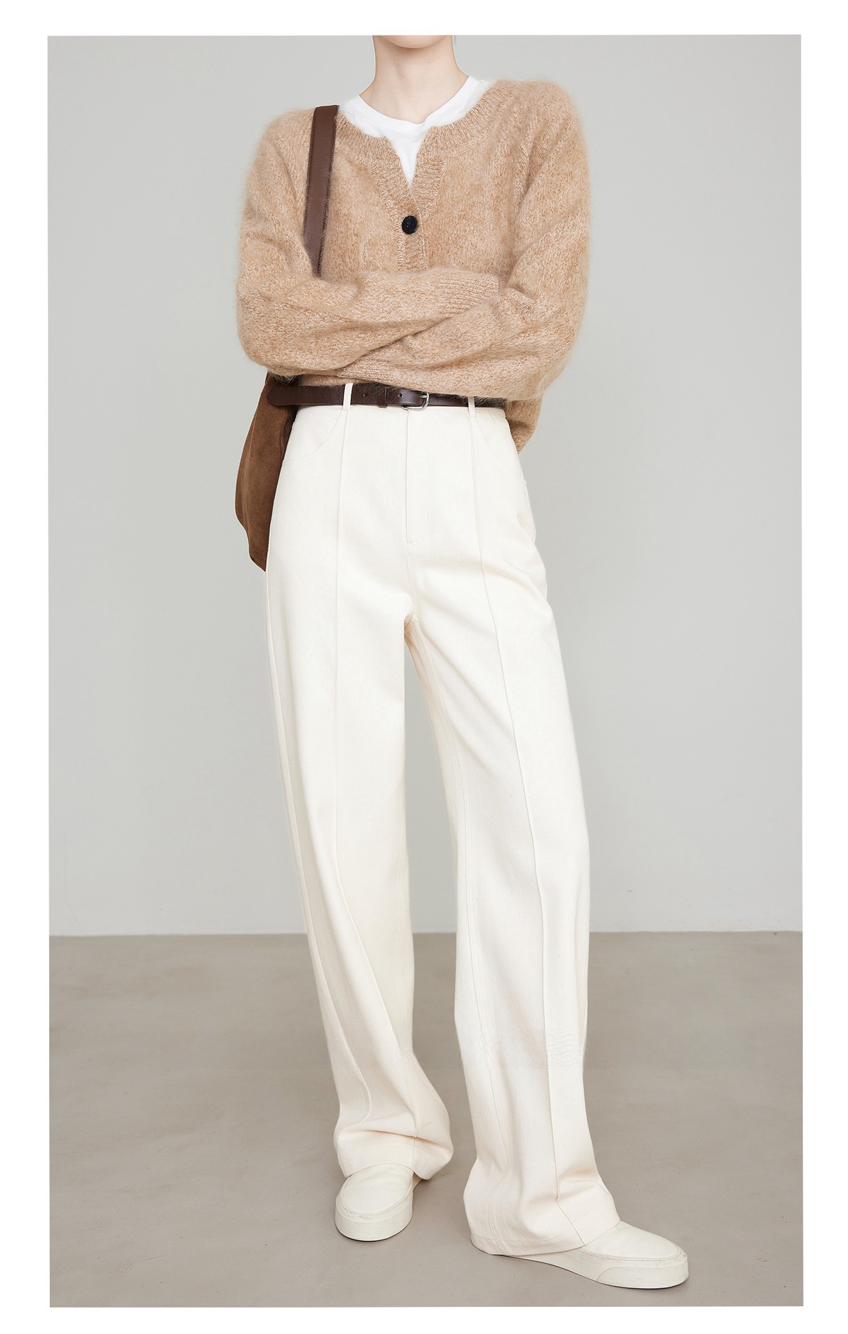 2025 새로운 오리지널 컬러 코튼 시드 살구색 화이트 Lyocell Tencel 청바지 오래된 돈 바람 바지 캐주얼 스트레이트 바지 여성용