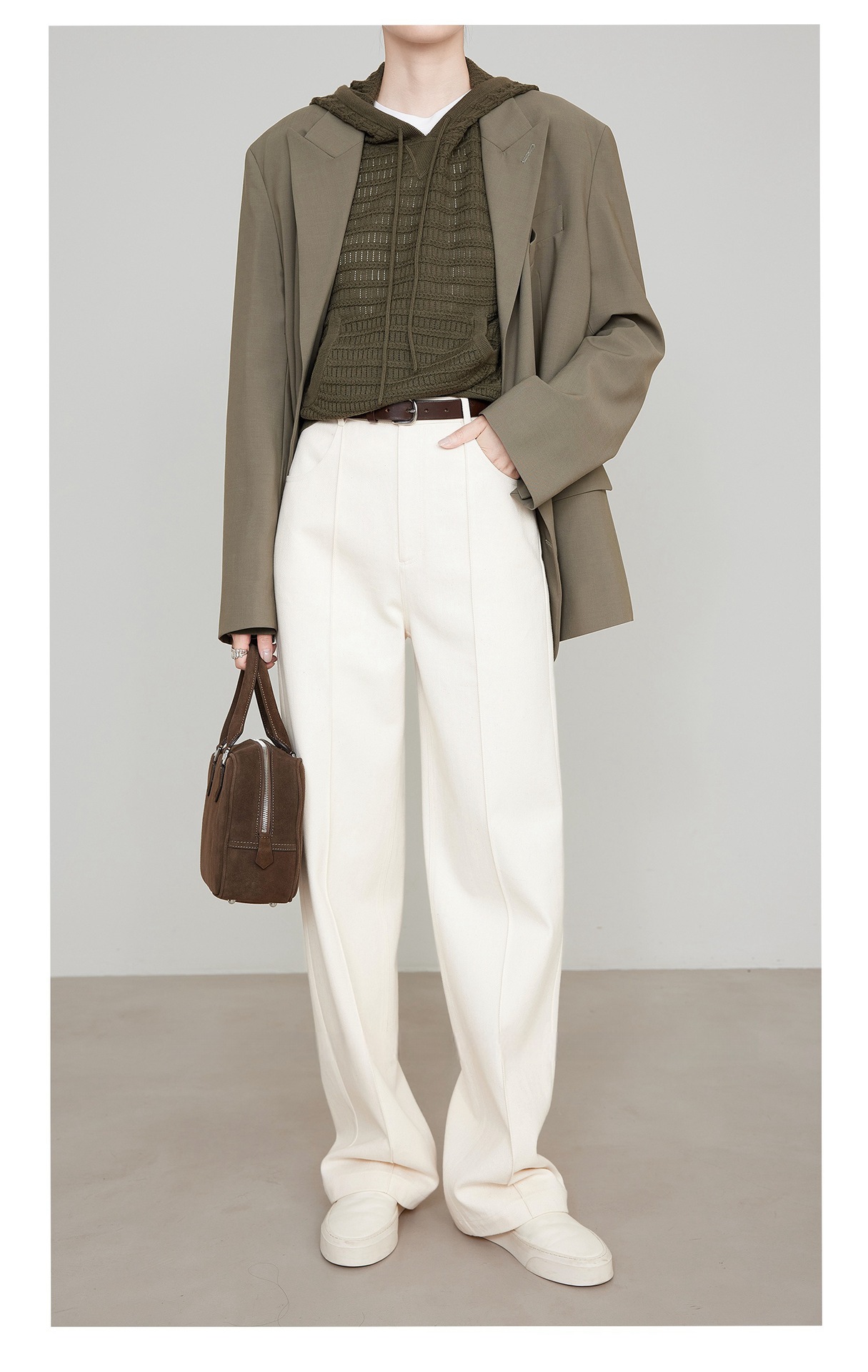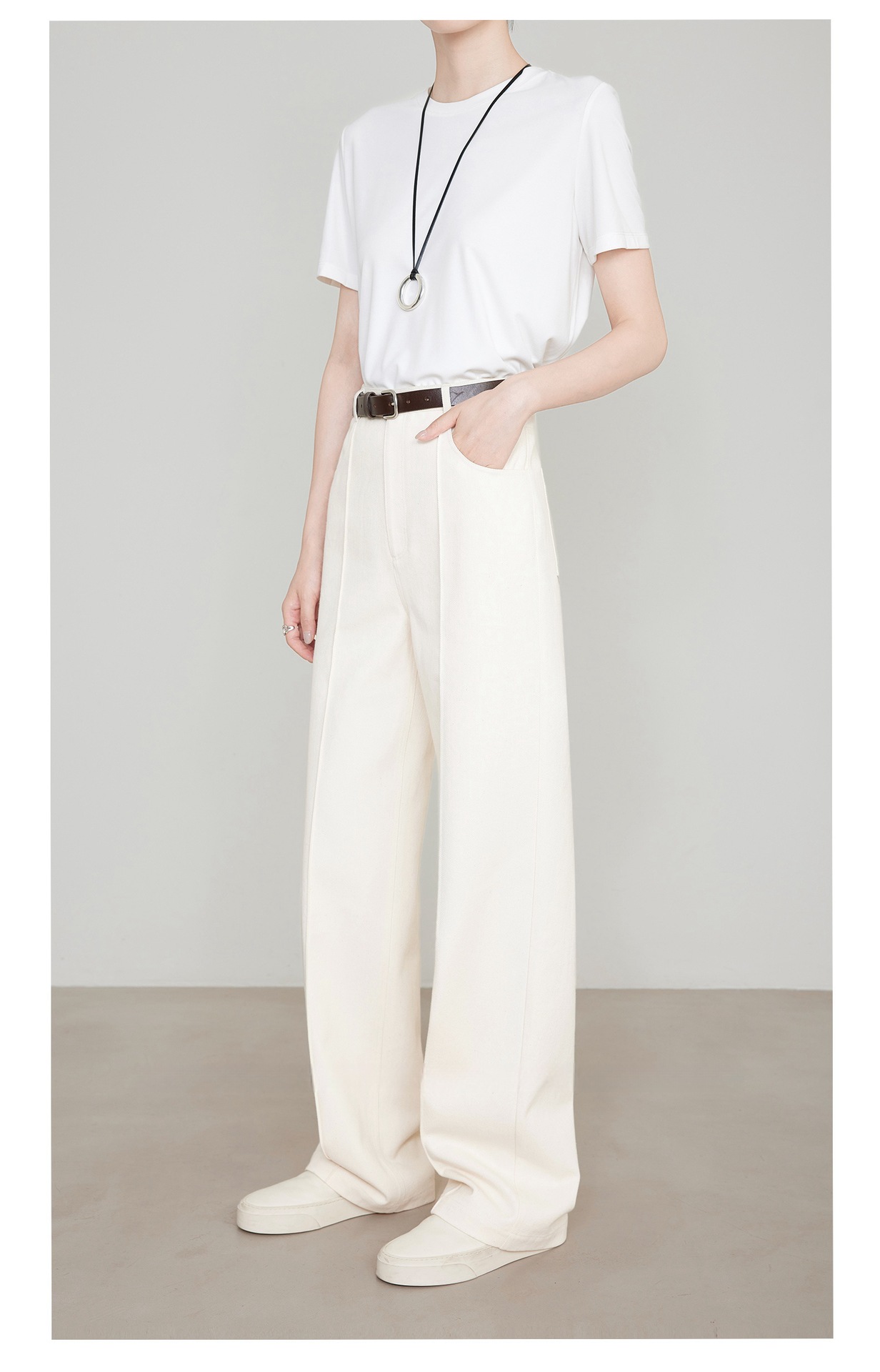 2025 새로운 오리지널 컬러 코튼 시드 살구색 화이트 Lyocell Tencel 청바지 오래된 돈 바람 바지 캐주얼 스트레이트 바지 여성용스토어 가기