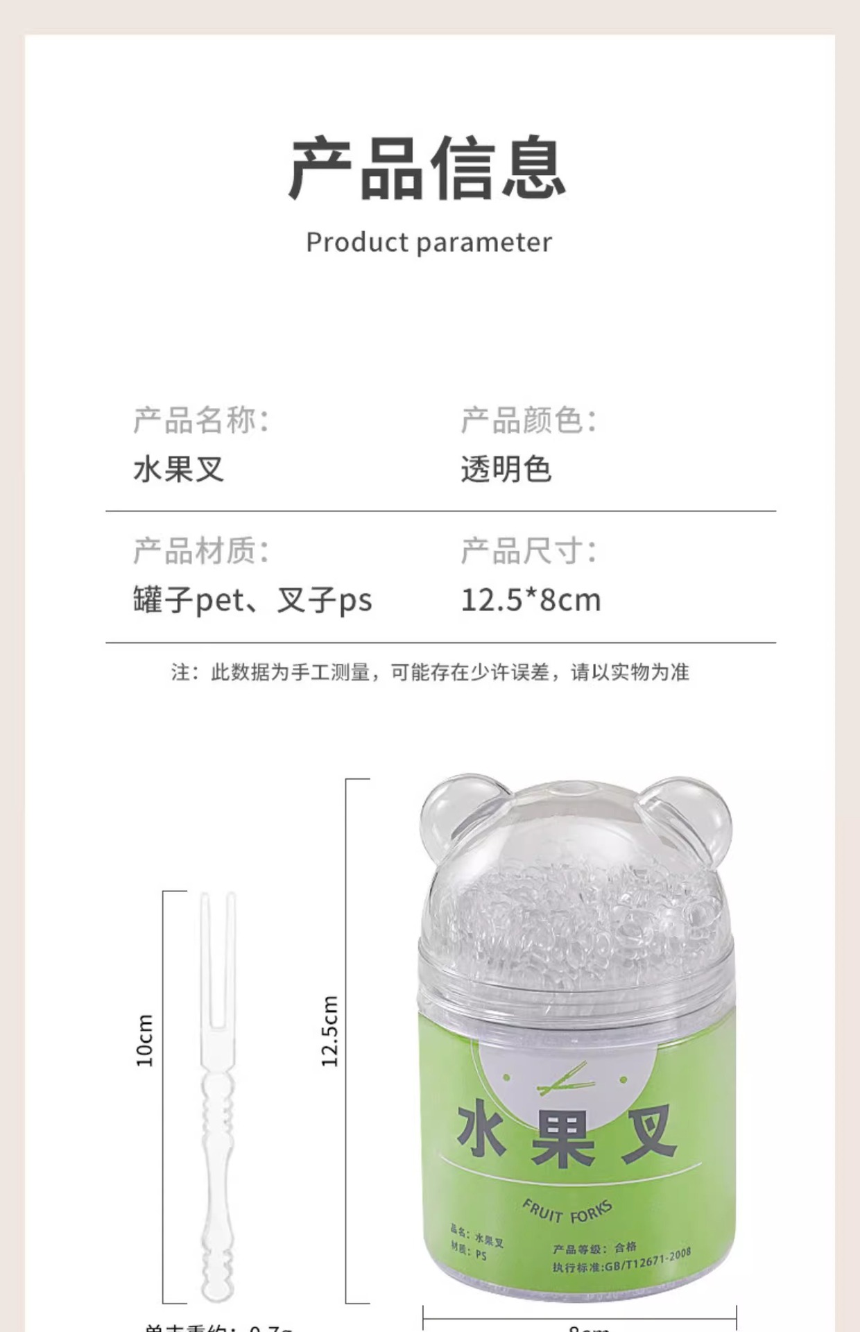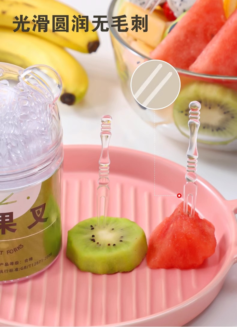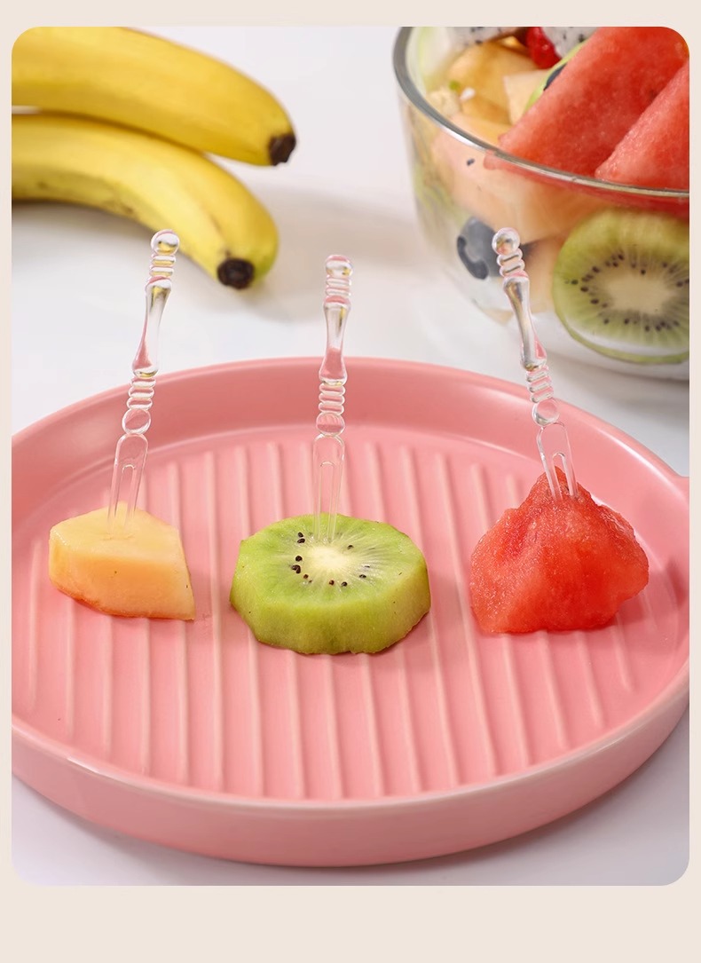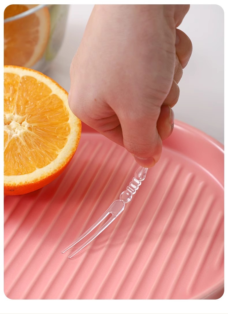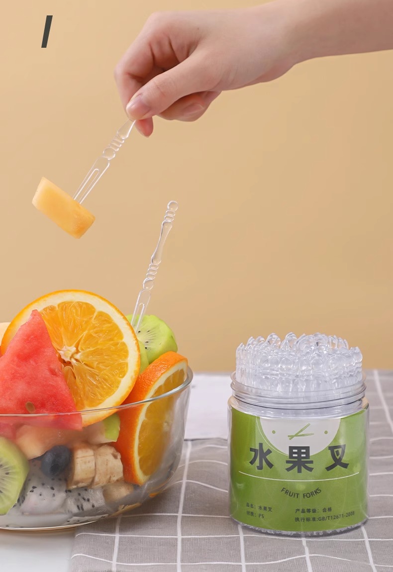 일회용 과일 포크 통조림 휴대용 저장 가정용 케이크 간식 특수 투명 작은 포크 식품 등급스토어 가기