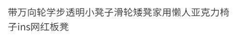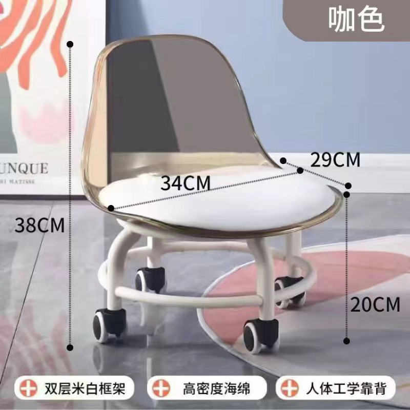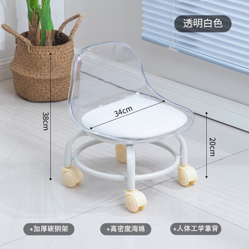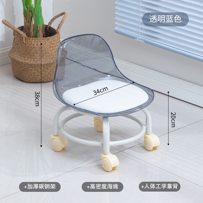 유니버설 휠 풀리 낮은 의자 가정용 게으른 아크릴 의자 Ins 사이버 인기 벤치와 투명한 작은 의자스토어 가기