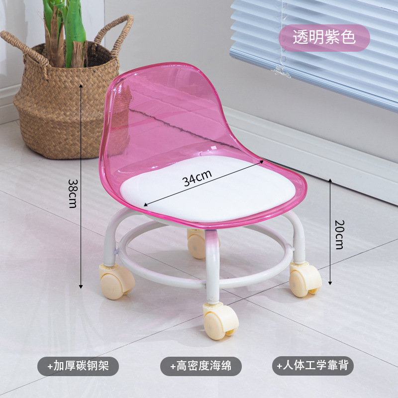 유니버설 휠 풀리 낮은 의자 가정용 게으른 아크릴 의자 Ins 사이버 인기 벤치와 투명한 작은 의자
