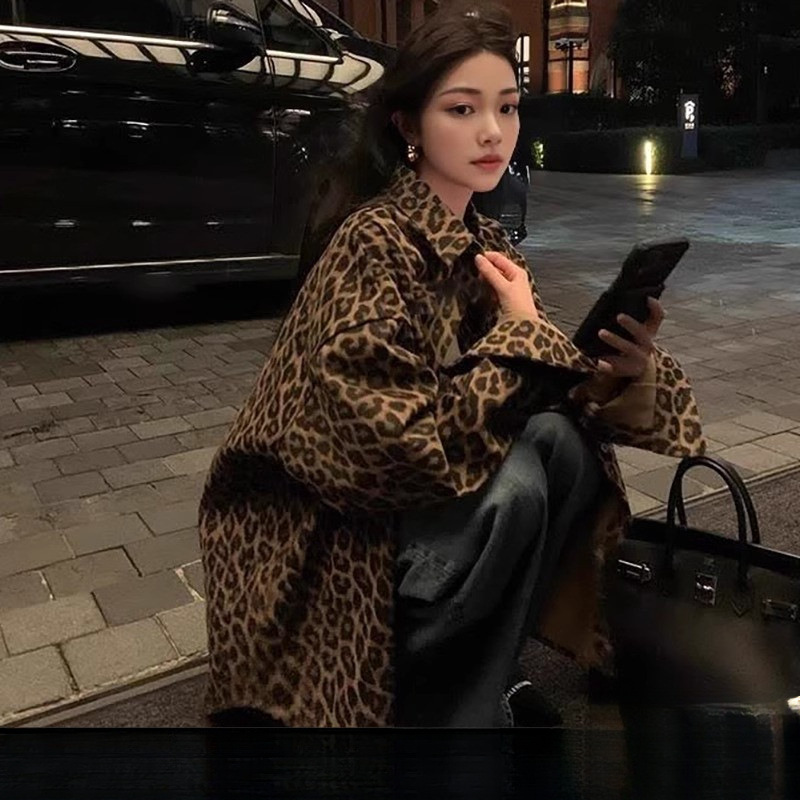 아메리칸 스타일 레트로 레오파드 무늬 재킷 여성의 가을 새로운 캐주얼 느슨한 긴 소매 데님 코튼 셔츠 한국 스타일 재킷 탑